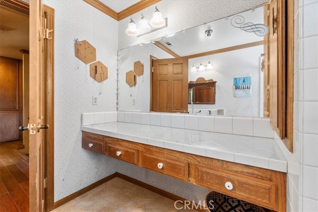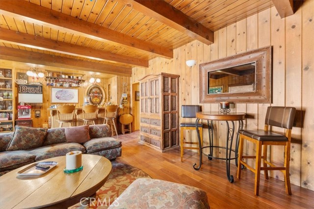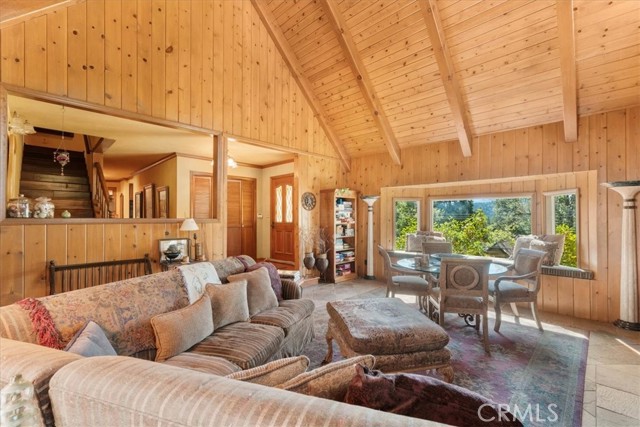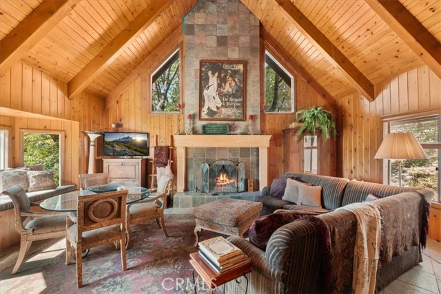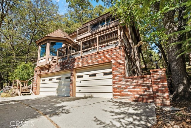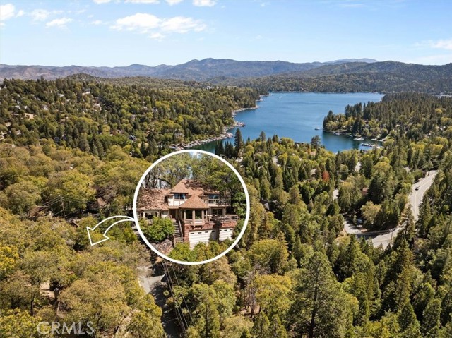**This home needs some Tender Loving Care, but what an opportunity!** Located just a short distance from the North Bay area of Lake Arrowhead, this property offers private lake rights with a membership to the Arrowhead Lake Association. Enjoy boating, fishing, skiing, and wakeboarding—just a few of the many recreational activities available. The home features three levels of living space. The lower level includes a three-car garage, a laundry room, and a storage area. The main level offers a living room with a cathedral ceiling, picture windows, and a fireplace; a kitchen with a breakfast nook and bay window; a formal dining room with deck access; a massive family room with a fireplace and wet bar; plus a bedroom and bath. The upper level includes a primary suite with an en suite bathroom and access to a viewing deck, along with three additional bedrooms and two hall baths. Other highlights include Knotty Pine paneling, ceiling fans, crown molding, and majestic mountain views.