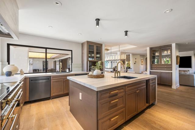 Welcome to the Sweet Life on Sweetwater! Prepare to be enchanted by this one-of-a-kind custom masterpiece--a home that could easily grace the pages of Architectural Digest. Spanning 3,128 square feet, this designer showpiece has been completely reimagined from top to bottom by TERAHAWK a Barclay Butera x Eric Hawkey design company, featuring curated selections from TERAHAWK and Restoration Hardware. Every detail exudes sophistication and artistry. Step inside to find crosscut French oak and natural stone flooring throughout, complemented by a luxurious primary suite and three additional guest bedrooms each with a beautifully appointed full bath. No expense was spared, from the $12,000 crystal chandelier that anchors the elegant living room to the chef-inspired kitchen boasting custom cabinetry, black stainless steel appliances including three column refrigerator, freezer, multi zone wine refrigerator, dual dishwashers, multiple sinks, a 48'' AGA Elise range, microwave drawer, warming drawer, appliance garage and new Bosch HVAC units for year-round comfort. The home also includes the recent addition of all-new bronze UV windows and doors. The living area with its sleek electric fireplace producing 10,000 BTUs of warmth is the perfect gathering place to unwind, surrounded by curated design and the inviting ambiance of music from the grand piano (piano not included). A cozy coffee nook, clever pull-out cabinetry, and generous storage solutions add both charm and function. Step outside to your own private resort oasis. The reimagined outdoor living space features all-new pool equipment, a refinished pool and patio, and a custom fire pit and BBQ area - ideal for entertaining or enjoying a peaceful evening under the stars. Every inch of this residence has been crafted with intention, blending comfort and artistry in perfect harmony. Truly a fairytale home come to life.