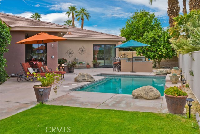 GREAT PRICE FOR THIS SPECTACULAR Single Story Home on a Huge Lot with Incredible Golf Course Views on the 11th Fairway of the Indian Springs Golf Course. Dramatic Custom Built Home features Soaring Cathedral-Vaulted Ceilings with all the Designer Finishes you'd typically see in a Million Dollar+ Home. Formal Living Room and Family Room separated by a see thru Fireplace. Open Floorplan flows from Family Room into the Gourmet Kitchen which has been recently remodeled with Top of the Line Cabinetry, Roll out Drawers, Beautiful Granite Counters and a Large Center Island. Top-of-the-line Appliances, New Stainless Steel Dishwasher, Microwave with Custom Trim Kit, Stainless Steel Sink and Garbage Disposal. Additional Features include a Beverage Center with Wine Rack, Stainless Steel Beverage and Wine Refrigerator. Custom Mirror and Built-in Buffet with Granite Top in Dining Room with custom Lighting. Designer Wood Floors installed in Secondary Bedrooms with en-suite Bathrooms. The Bathrooms have been tastefully upgraded. New Water Heater. Interior of the Home has been Freshly Painted. Amazing Golf Course Views from the Resort Style Backyard perfect for Entertaining with a Sparkling in Ground Pool and Fireplace. The in ground Ultra Private Spa has it's own entrance off the Master Bedroom. Enjoy the Fantastic Built-in Bar-B-Que in the backyard which offers Great Entertaining areas. NO HOA Dues & Low Tax Rate. This property is Model Perfect, a 10+. Your Buyers will love this home!