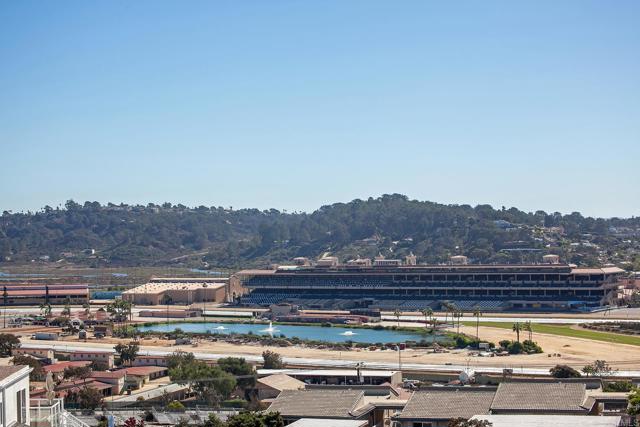 MAGNIFICENT 180-DEGREE BEACH VIEWS! ENJOYING GLORIOUS SUNSETS EACH EVENING! ADDITIONALLY FRONT AND CENTER RACETRACK VIEWS! First class renovation completed October 2022. This is a beautifully appointed townhome at the top of the complex. This rarely available model is 2-story, open floor plan, with lots of natural light. Bedrooms are on first level with private deck for outdoor enjoyment. Features oversized garage with finished floor and Restoration Hardware furnishings and finishes. Complex has Ocean View pool, spa, clubhouse, and fitness room. Walking distance to beach, Del Mar Race track, Cedros Design District, train station, restaurants, shops, and much more. Resort living at its best! This wont last!