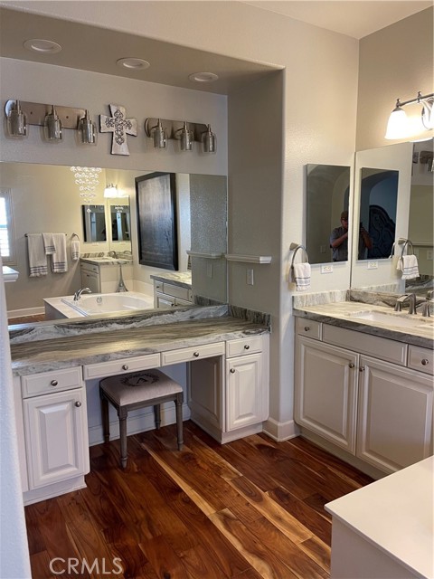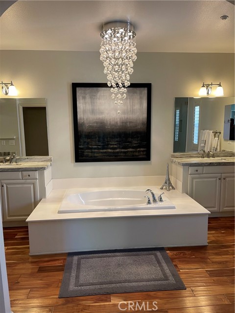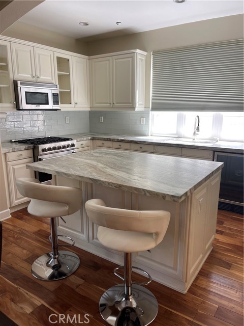 Beautiful Bright and airy sought after End unit, Impressive Entry with High Ceilings and arched openings lead your eyes to the to the upper level Kitchen and Dinning area, Kitchen Boasts Beautiful Marble Counters and a large Window to bring in natural light, large Primary bedroom with walk in closet and spacious primary Bathroom Primary Bath tub located in the center of the bathroom with a waterfall chandelier very impressive also includes a separate vanity with large mirror and plenty of lights, Stunning Hardwood floors and Marble Counter tops, beautiful white Shutters and a Two Car Garage on the Lower level With Extra Storage and like new Epoxy Floors Definitely Move in Ready Unit 106