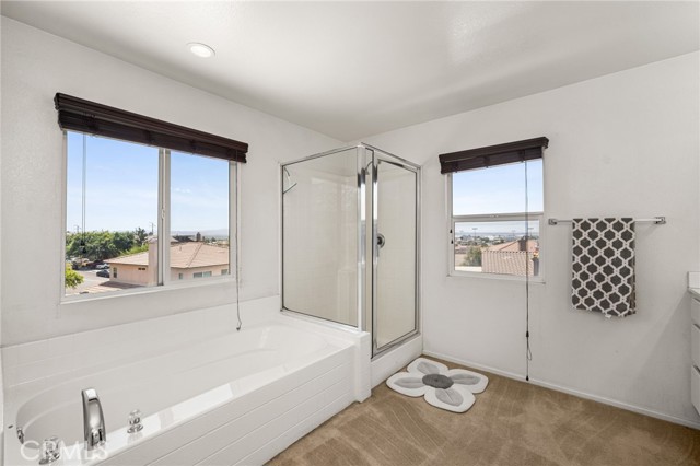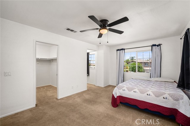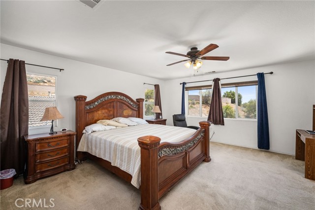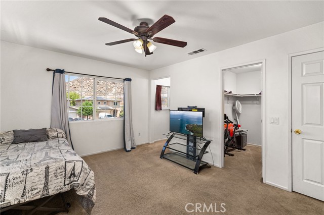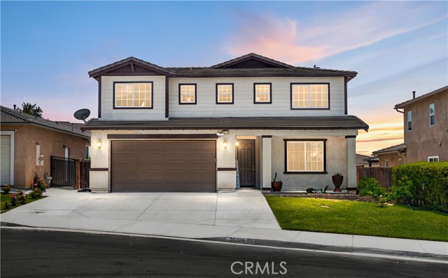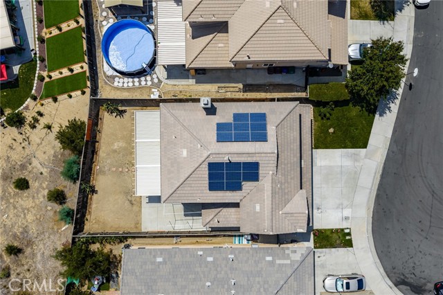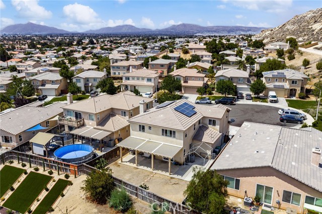 PAID OFF SOLAR — Say goodbye to high energy bills with 16 fully paid solar panels already installed! This well-cared-for home is tucked away on a quiet cul-de-sac and offers stunning city views from multiple angles. Inside, you’ll find an open floor plan with a first-floor flex room that can easily be converted into a 4th bedroom, plus three full bathrooms for added convenience. Each of the three bedrooms features spacious walk-in closets, and the primary suite includes dual sinks for extra functionality. Additional upgrades include a newer water heater, dual-pane windows, rain gutters, and a fresh coat of exterior paint. The 9-foot vinyl patio cover with two ceiling fans creates a perfect space for relaxing outdoors year-round. A tandem garage provides flexible space for extra storage, a gym setup, or a third vehicle. You’ll also love the home’s proximity to top-rated elementary, middle, and high schools, Moreno Valley College, scenic hiking trails, and convenient shopping centers just minutes away. Don’t miss this opportunity to own a move-in-ready home in one of Moreno Valley’s most desirable pockets. Schedule your private showing today!