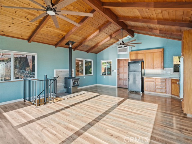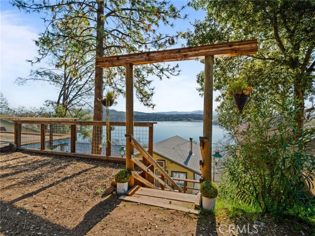 Sunrise Shores Cabin Retreat. Picture yourself watching the Sunrise from the living room on brisk mornings from the picturesque windows or from your back deck on our perfect summer evenings, taking in the beauty of Clear Lake and all that it offers. This immaculate cabin-style home is filled with character and its location allows for a life filled with nature's experiences. Walking in you're greeted with natural light and beamed ceilings. A wood stove for cozy heat on cooler nights. Open floor plan to the kitchen and dining area, a spiral staircase leads you down to the bonus room. Down the hall is a beautifully remodeled bathroom with a walk-in tile shower and a dual sink vanity. On the main level is the also the Primary Bedroom with beamed ceilings to match the living room and again the same picturesque view of Clear Lake. On the lower level is the bonus room, laundry area and 2nd full bathroom. This home is located in the Sunrise Shores Community. It offers lake access through a parking area and boat ramp.