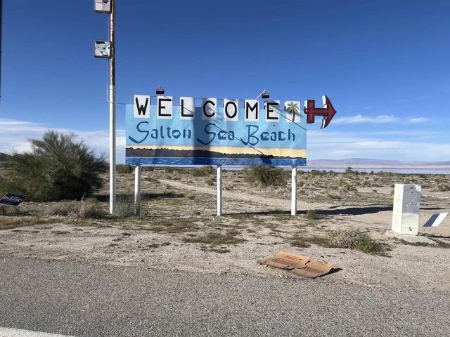 BIG corner lot measures 15,634 sq ft/.36 acre in the Salton Sea area! Build a home or keep for future development or sale. So much to see...Visitors Center, Sonny Bono Wildlife Refuge, Bombay Beach Ruins Art Project and more! Become part of the Lithium boom since materials to produce Lithium batteries has been found and possible production may begin in 2026. Once production begins projections say thousands of good paying jobs will be filled! Utilities may be nearby. About 60 miles to Palm Springs and 48 to Coachella Valley! Plus, recreational opportunities galore! Hiking, off roading, nearby Casino, and about an hour to Palm Springs and less to Coachella Valley!! Come see what Salton Sea is all about!! Utilities may be nearby.