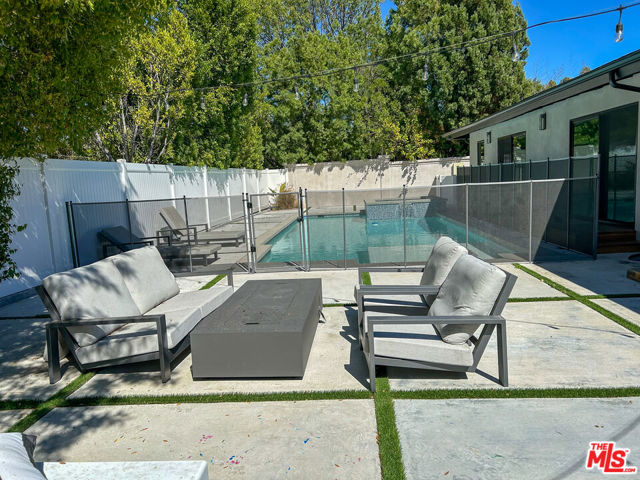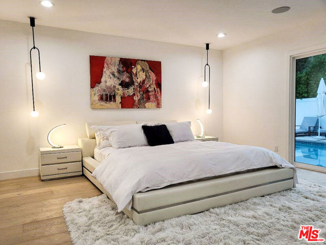 Step into luxury living with this stunning single-story retreat nestled in the heart of Encino, just south of Ventura Blvd. This home features 5 bedrooms, 4.5 bathrooms, and over 4,200 SQ FT of elegant living space. Gorgeous, engineered wood flooring, vaulted ceilings, and an open floor plan elevate everyday living. Gourmet kitchen with quartzite countertops, wine cooler, large waterfall island, Thor oven and gas range, and Dacor brand refrigerator, perfect for culinary adventures and entertaining guests. Whether you're working from home or enjoying leisure time, this property offers versatility and functionality. A bonus room off the kitchen is the ideal space for a game room, home office, home gym. Each bedroom is bathed in an abundance of inviting natural light, creating a warm and welcoming atmosphere throughout. The primary suite features a walk-in closet and en- suite complete with double vanity and relaxing rain shower. In addition to all the modern upgrades, this home is equipped with a Control 4 smart home system that connects to indoor speakers and exterior cameras. The backyard offers a sparkling pool complete with jacuzzi and Baja shelf, built-in BBQ, and spacious grassy area. Located near top public and private schools, popular restaurants and shopping destinations, parks, hiking trails, golf courses, and just minutes from the 101 and 405 freeways, this home offers convenience and connectivity within this highly sought-after Encino community. The house can be rented with or without furniture.