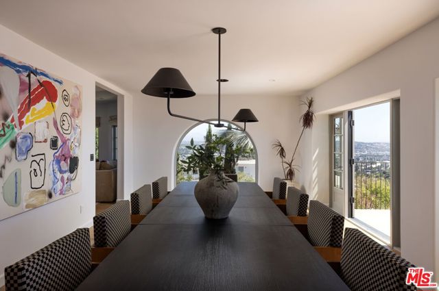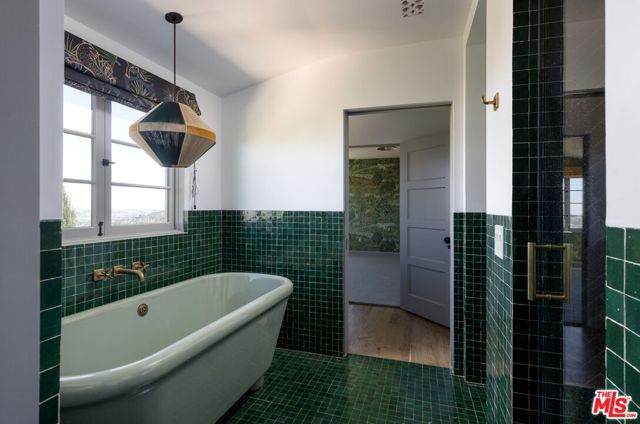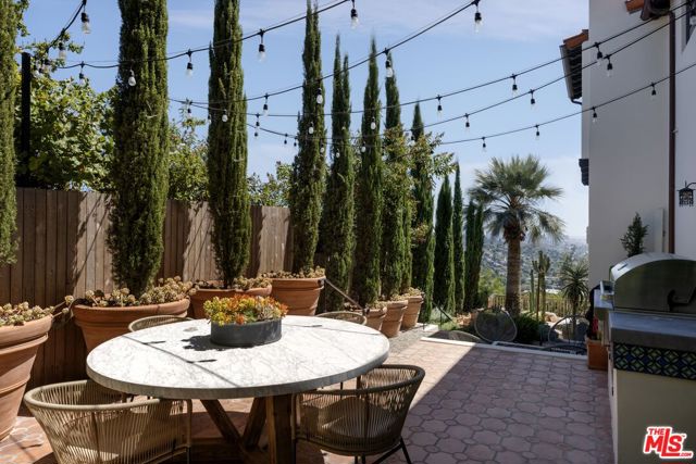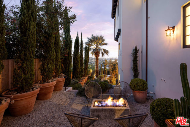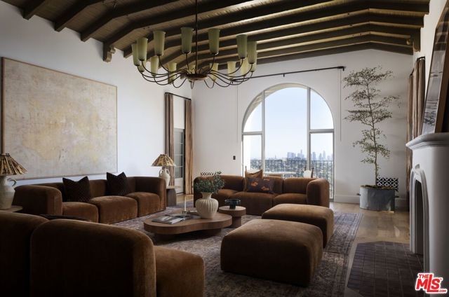 Perched in the hills of Los Feliz on a quiet cul-de-sac, Casa Vista is a reimagined 1928 Spanish Colonial that seamlessly fuses timeless architecture with sophisticated modern design and panoramic city views. A private compound situated behind solid gates - the home was rebuilt from the studs with all-new systems, high-end finishes, and meticulous attention to detail. Casa Vista exudes the romance of Old Hollywood with the ease of contemporary living. A formal entry opens to the main level, where a 13-foot ceiling living room with rebuilt fireplace and arched windows perfectly frame a view of downtown LA. The kitchen was completely redesigned during the renovation and features marble slab countertops with integrated sinks, custom European oak cabinetry, a 60" Wolf range, dual Miele dishwashers, a wine fridge, and a hidden coffee station. Upstairs, the primary suite captures sweeping skyline views and features a pitched ceiling, spa-inspired bath with a concrete soaking tub framed by an arched window, and generous custom closets. Additional bedrooms showcase Moroccan Zellij tilework, bespoke hardware, and thoughtfully designed finishes that pay homage to Hollywood's golden age of architecture. A central courtyard frames the residence with a newly rebuilt zero-edge pool and Baja shelf, surrounded by multiple terraces designed for lounging and dining. Outdoor amenities include a built-in BBQ, gas firepit, and lush landscaping with mature olive trees, Canary Island palms, and terracotta planters. The side garden features a tranquil fountain, while curated lighting and ficus hedging create privacy and ambiance throughout. Blending historic charm with modern elegance, this residence captures the very essence of California living. With its timeless architecture, private setting, and sweeping city-to-ocean vistas, this Los Feliz masterpiece offers a rare balance of architectural integrity and effortless sophistication - crafted for those who appreciate design, history, and the art of living beautifully.