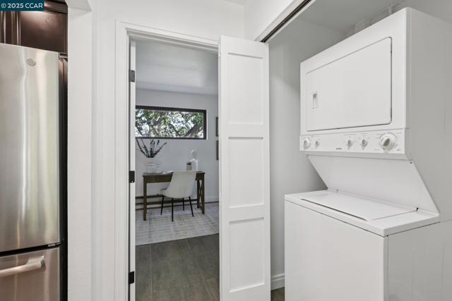 Wow, a second chance at this stunning home?! Imagine living in this exclusive retreat at the end of a cul-de-sac featuring soaring ceilings, windows with views to the majestic trees and peaceful landscape that has been tastefully remodeled from top to bottom! This end unit is filled with soft light and enjoys two ensuite bedrooms (or make one an office), with open floorplan, designer kitchen with quartz counters and stainless steel appliances and nearby laundry closet. You'll love sitting on the front patio adjacent to the greenbelt or relaxing on the balcony overlooking the trees with peek-a-boo views of Mt. Diablo. The designer bathrooms complete the feeling of escape as does the wooded pathways, swimming pool, picnic area, and basketball court in the complex. One-car garage and visitor parking at the end of a quiet cul-de-sac, yet near shopping, transportation, freeways, schools, hiking trails, and parks. This condo exemplifies dream living at its best!