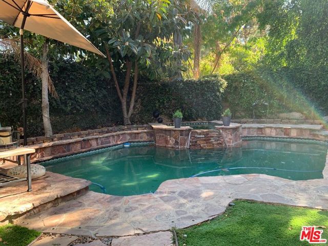 Stunning custom home with resort-like, private back yard with entertaining pool and spa. Spacious and open floor plan, high ceilings, grand living and formal dining rooms, family room, 3 fireplaces, beautiful chef's kitchen with granite counters and island, stainless steel appliances, luxurious primary bedroom suite with double-sided fireplace, walk-in closet, fabulous, large primary bath, dual vanities, fireplace, all guest bedrooms are upstairs. Custom library / office is downstairs. Dream back-yard with manicured grounds, mature, tropical landscaping with refreshing pool and spa, totally private! Enjoy a wonderful and relaxing lifestyle! Nothing else compares at this price! AVAILABLE NOW, unfurnished. Grab it fast!