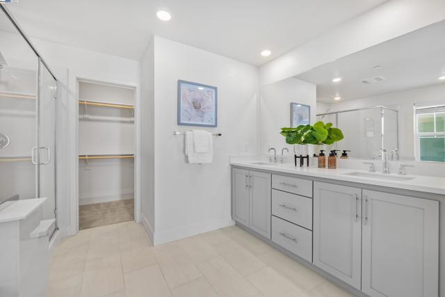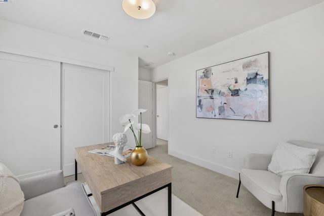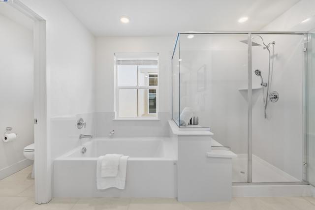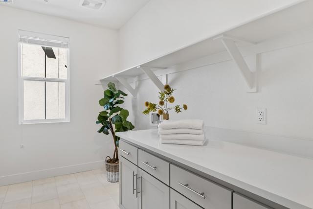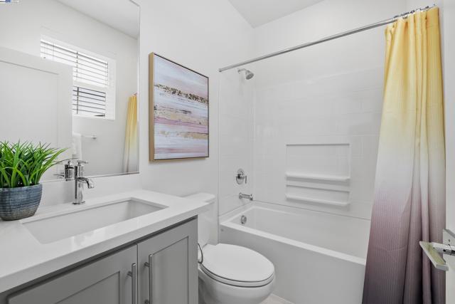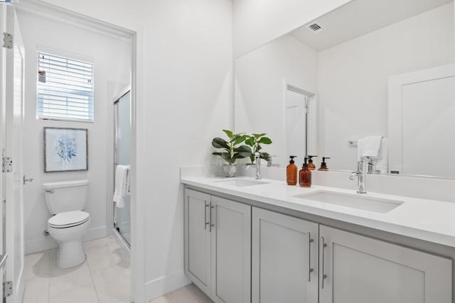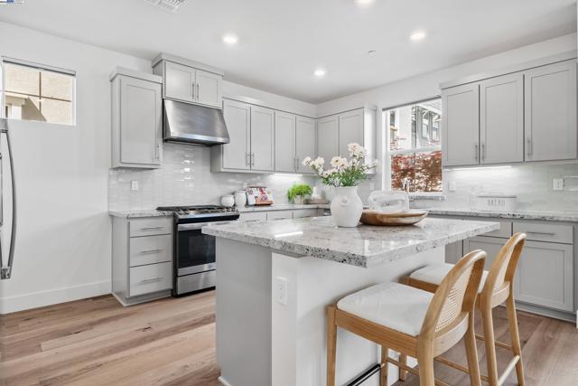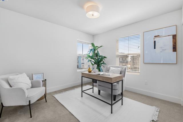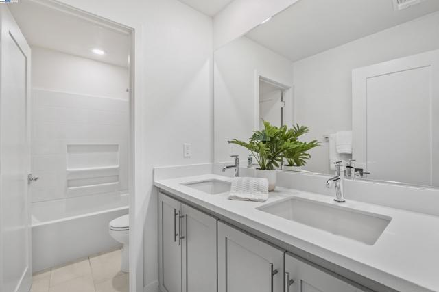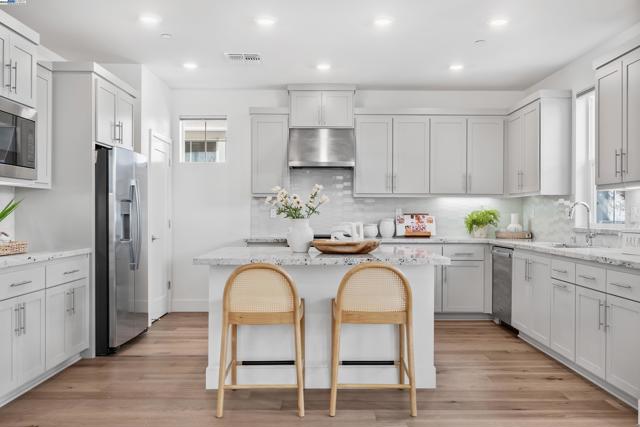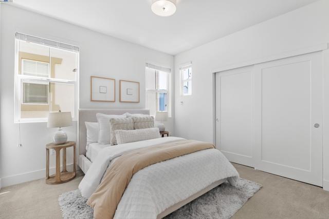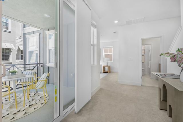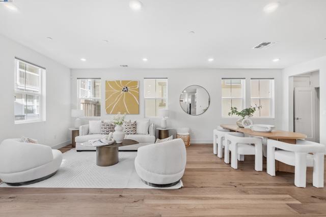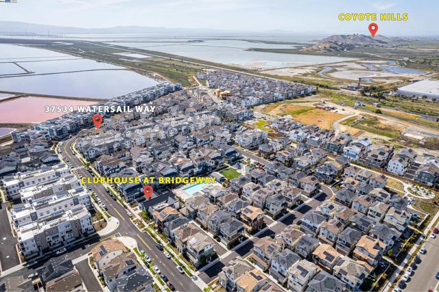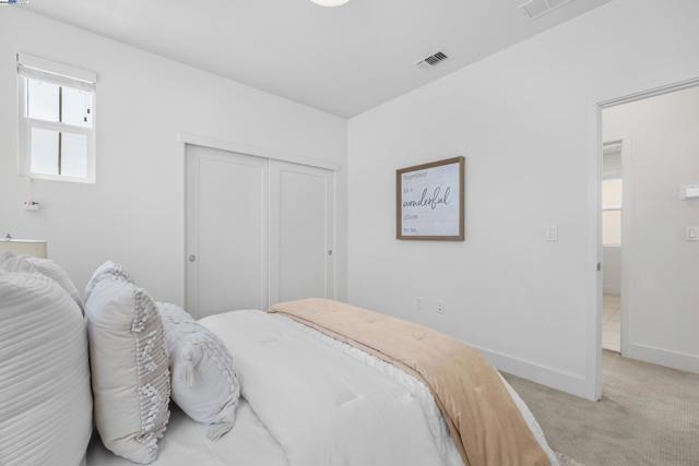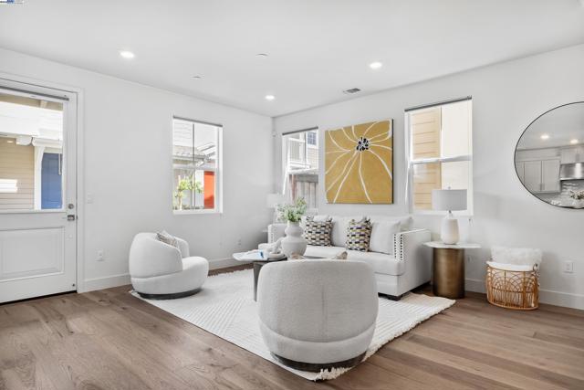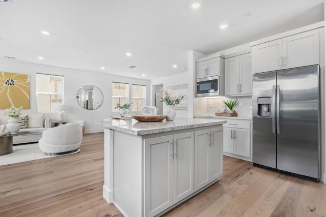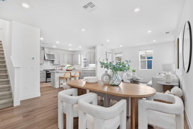 Where modern sophistication meets smart design, this impressive Newark residence boasts a spacious 2,886 SQFT of living space, perfectly accommodating its 5 bedrooms and 4.5 bathrooms. Engineered hardwood floors extend throughout the first floor. The open-concept kitchen is a chef's delight, featuring a full backsplash, quartz countertops, and top-of-the-line stainless steel appliances. Upstairs, the upgraded carpet adds a plush feel to the bedrooms, enhancing the sense of luxury. Each of the two suites offers a private retreat with its own bathroom, providing comfort and privacy. The second floor unveils a large loft, an ideal space for entertainment or relaxation. Complementing this are two generously sized patios, inviting you to enjoy the outdoors in tranquility. The home is equipped with owned solar panels that enhance energy efficiency. The Rinnai tankless water heater, Moen Flo smart water monitor, and Honeywell upgraded thermostats ensure comfort and efficiency. Bridgeway residents enjoy a host of amenities like a clubhouse, a swimming pool, dog park, and playground. Nearby National Wildlife Refuge offers open space with trails and nature to explore. Close to Meta and Tesla, among other major employers. Easy access to Dumbarton bridge and I-880.