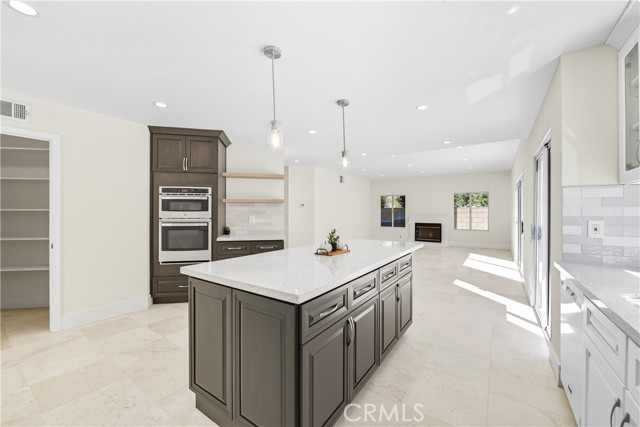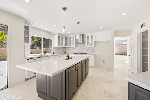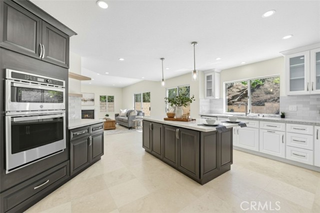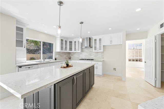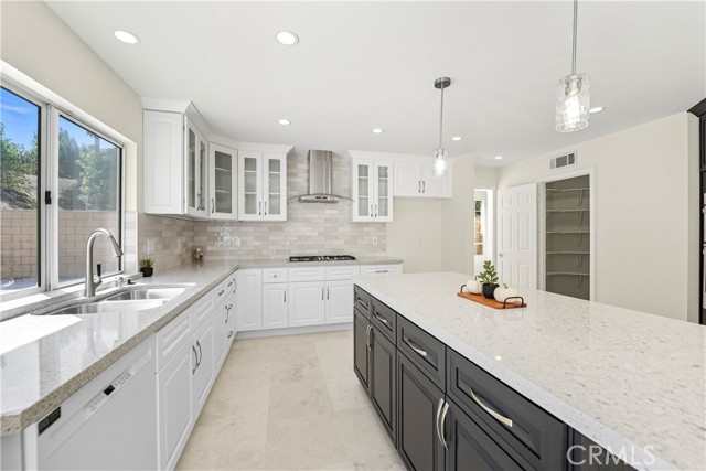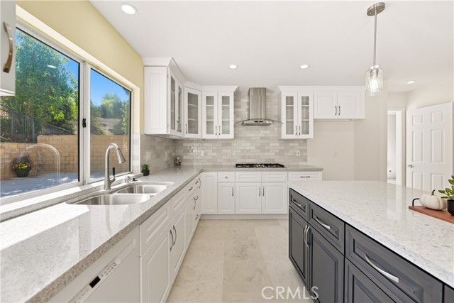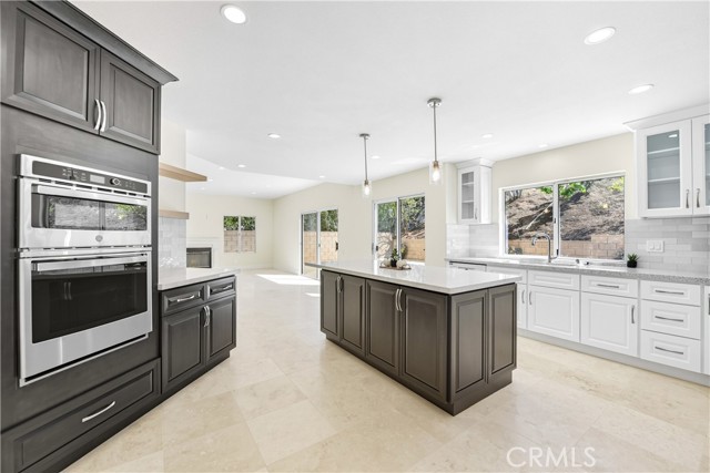 Tucked away on a peaceful cul-de-sac in one of Moorpark’s most desirable neighborhoods, this stunning residence perfectly blends timeless architecture with fresh, modern sophistication. With 5 bedrooms, 4 bathrooms, and approximately 3,631 sq ft of living space on a beautifully landscaped 9,400 sq ft lot, every detail has been thoughtfully designed for comfort, style, and connection. From the moment you arrive, the home’s inviting curb appeal draws you in—classic stucco exterior, manicured greenery, and mature trees that frame the entryway with a sense of warmth and welcome. Inside, light pours through soaring windows, illuminating an open, airy floor plan defined by vaulted ceilings, graceful lines, and a seamless mix of stone and tile flooring. The formal living room sets the tone for elegant gatherings, with sunlight dancing across its spacious layout and a fireplace that anchors the room in quiet sophistication. Beyond, the heart of the home—a completely renovated kitchen—balances modern function with timeless beauty. Crisp white shaker cabinetry with glass inserts, sleek quartz countertops, a large center island with breakfast bar, stainless-steel appliances, and pendant lighting create a space that’s as inspiring as it is practical. The kitchen opens to the family room, where a second fireplace and sliding glass doors invite effortless indoor-outdoor living. Downstairs you will also find a spacious bedrooms complete with ensuite bathroom. Upstairs, the primary suite feels like a private retreat. A grand arched window fills the room with natural light, while the spa-inspired ensuite bathroom offers serenity with its soaking tub, separate shower, dual-sink vanity, and modern finishes. Each secondary bedroom offers generous space and style, complemented by beautifully updated bathrooms featuring new vanities, mirrors, and designer fixtures. Additional touches—fresh interior paint, new lighting throughout, a spacious laundry room with built-in cabinetry, and a three-car garage—enhance both beauty and livability. Step outside to your private backyard, where lush landscaping creates a natural sanctuary for entertaining, dining al fresco, or simply enjoying the Southern California sunshine. Located near schools, scenic parks, and charming local shops, this home also offers access to resort-style community amenities including: pool, spa, and clubhouse—bringing the best of Moorpark living right to your doorstep. Welcome home!