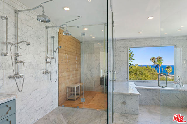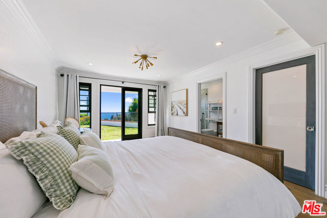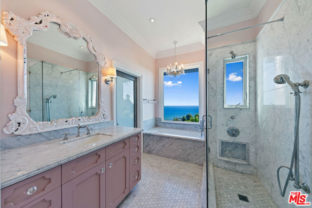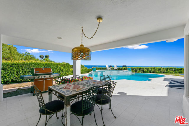 Stately Ocean-View Villa in prime mid-Malibu location with breathtaking Queen's Necklace Views - perched 300ft. above the ocean, moments to the sand. Offering over 6,400 sq. ft. of refined coastal living with sensational ocean, whitewater, and coastline views from nearly every room Designed with sophistication and taste, the home combines grand scale and timeless elegance with a warm, inviting ambiance. A gated entry leads to a wide circular drive and generous parking. Inside, abundant natural light floods open, airy spaces with soaring ceilings, expansive glass walls, and seamless indoor-outdoor flow. The gourmet kitchen features a grand center island, Wolf professional range, double ovens, and opens to both formal and casual dining areas. The living spaces are ideal for entertaining or intimate gatherings, all capturing breathtaking ocean vistas. The spacious primary suite enjoys its own private level with a five star spa-inspired Carrera marble bathroom including double shower, ocean view steam room with full sauna and soaking tub, enormous walk-in closet, wet bar, fridge, fireplace and a private terrace overlooking the sea. A separate wing offers ample accommodations for family and guests, each en-suite with ocean views. Designer-perfect "beach chic" interiors flow throughout the home. Outdoors, the sparkling pool, spa, and expansive decks create a serene retreat for lounging or entertaining against a dramatic ocean backdrop. Situated on a quiet cul-de-sac just minutes to Malibu's best beaches, shopping, and dining. A truly exceptional residence offering the ultimate in coastal sophistication.