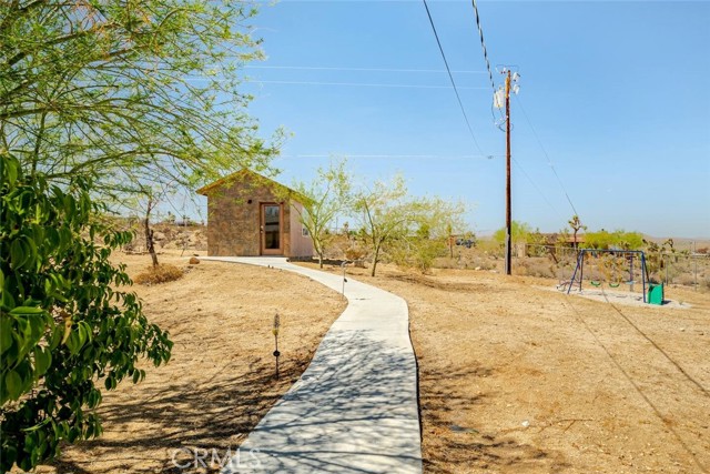 Premier 3 Bedroom 2 Bathroom Home With 1,616 Sqft On 1.25 Acres In One Of The Most Sought After Locations Of The Hi-Desert! Welcome to your private desert retreat, an architectural gem nestled in a serene cove just minutes from Joshua Tree National Park. This stunning home seamlessly blends organic design with modern comfort, showcasing distinctive dome-inspired architecture, smooth craftsman cement finishes, and breathtaking panoramic views of the desert and mountains from every angle. Step inside to discover a light-filled layout designed for relaxation and connection. The property is family and dog friendly, featuring a fully fenced backyard that provides a safe space for kids and pets to play under the desert sun. The expansive front yard, framed by elegant Palos Verde trees and native desert landscaping, leads down a long private driveway, creating a true sense of arrival and tranquility. In the backyard, a separate casita awaits, offering the perfect space for guests, creative projects, or a yoga studio for wellness retreats. This home also includes a brand new septic system and thoughtfully maintained utilities, ensuring comfort, reliability, and low-maintenance desert living. Located in a peaceful neighborhood, this sanctuary is just a few minutes' drive from the entrance to Joshua Tree National Park, as well as local dining options and the vibrant town center of Joshua Tree, while still feeling a world away. Experience the perfect blend of nature and modern living in this unique desert oasis.