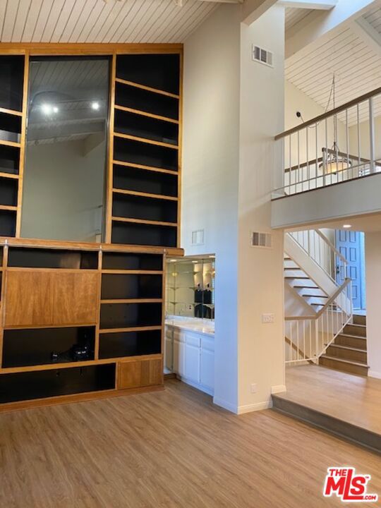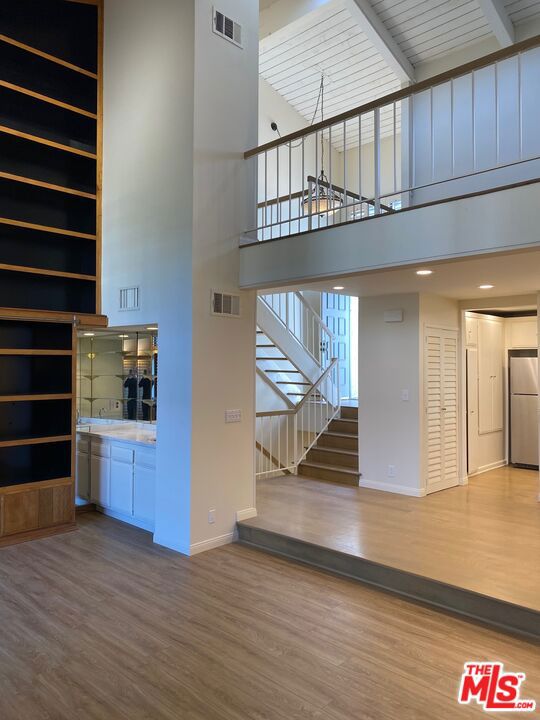 Stunning and spacious townhouse in wonderful gated complex in prime Westwood/Century City. This 1755 square foot townhome feels like a house with 2 bedrooms, 2.5 baths and huge 150 sf loft that can be used as an office/den or 3rd bedroom. The bright living room boasts soaring 20-foot ceilings, sliding glass doors, picturesque windows, floor-to-ceiling library, custom shutters, fireplace and large balcony overlooking a lushly landscaped exterior. Unit was just remodeled with updated kitchen/baths and brand new floors Two downstairs bedrooms provide privacy and a separate attached patio. The open kitchen comes complete with sparkling granite countertops, extensive cabinetry and top-notch stainless steel appliances, including a Wolf range. Other amenities include Nest thermostat, inside washer/dryer, tons of storage, direct access and 2 side-by-side parking spaces. Cable TV, internet, and water included with lease. Complex is well maintained with beautiful grounds, community spa and is walking distance to shops, restaurants and Westfield Mall. Located in the acclaimed Westwood Charter School District. Property is being offered unfurnished for a minimum 1-year lease. Available immediately!