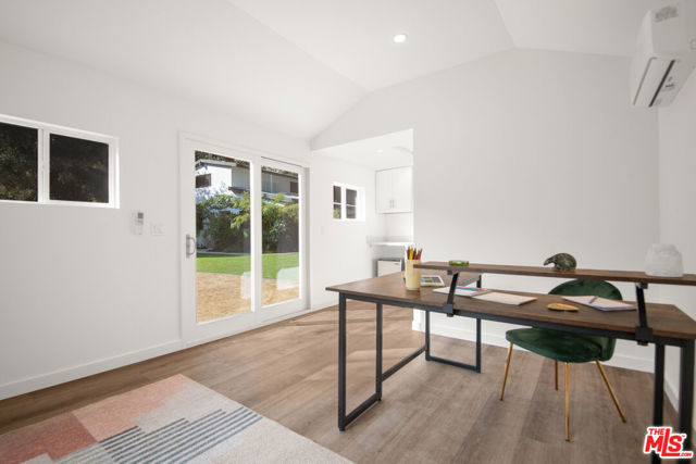 A rare property in Old Topanga with a second entrance from the quiet Bonnell Drive. This beautifully remodeled view filled three-bedroom, two bath home offers modern amenities, unexpected upgrades, and one of the largest flat lots in the area. You'll appreciate the expansive, usable yard rarely found in Topanga.The home features a stylish kitchen with classic white shaker cabinets, sleek quartz countertops and stainless appliances. You'll love cooking and entertaining in this beautiful space, which opens up to a lovely outdoor patio where you can soak in the peaceful ambiance of your surroundings. Kitchen accesses a full laundry room with storage, utility sink and a side entrance to outdoors. The main level includes one bedroom and full bath, while two additional bedrooms and a full bath are located upstairs, with access to the second story deck. The spacious living room has vaulted ceilings, recessed lighting, and a striking fireplace, creating a bright and inviting atmosphere for entertaining or relaxing. Upgraded privacy-maintaining windows fill the space with natural light while ensuring a peaceful indoor retreat and blocking the UV rays. The real magic of this property lies outside, where you'll find a sprawling, beautifully landscaped yard with plenty of space for outdoor activities and entertaining, while being completely fenced. In the rear of the yard is a detached studio guesthouse, complete with a 3/4 bath and patio. Outdoors offers one of the largest, flattest yards in Topanga Canyon, with a large patio area, easy care turf. A wooden bridge crosses over the seasonal creek leading to another sunny yard perfect for those wanting to have a veggie garden. The second entrance on Bonnell Drive has an automatic gate and room to park an RV or extra cars. Additional highlights include a two-car garage equipped with an EV charger, Ring doorbells at the front entrance and garage.A rare find in Topanga, this property combines flat usable land, upgraded finishes, and quiet privacy It's a short distance to Bonnell Park, Red Rock Park and the Skyline Loop. Improvements completed in 2023 and 2024 include roof, windows, HVAC, kitchen and bath remodel, flooring, paint, plumbing, electric, detached guest house/office and automatic gate on Bonnell. Both full baths have also been remodeled in the same style as the kitchen. All flooring has been redone, with warm toned high-quality engineered wood and carpets. Renter's insurance required.