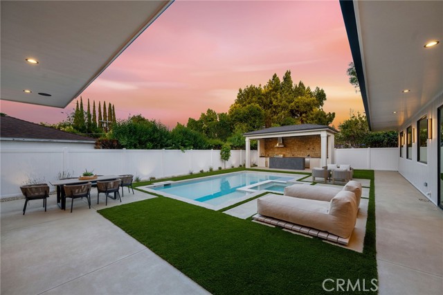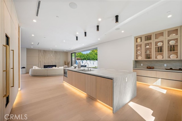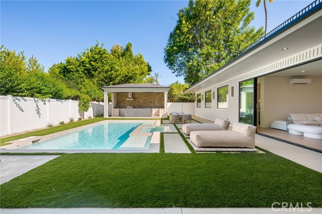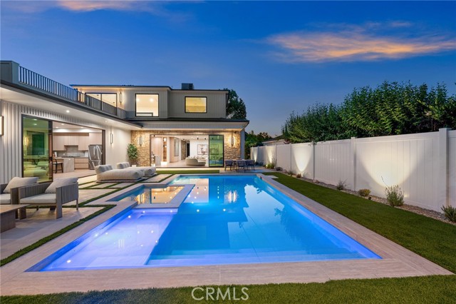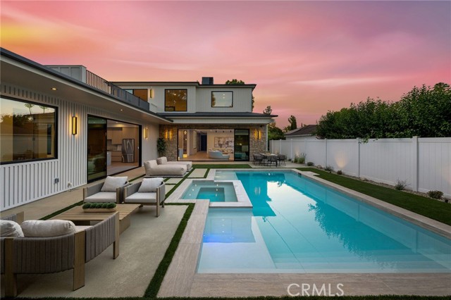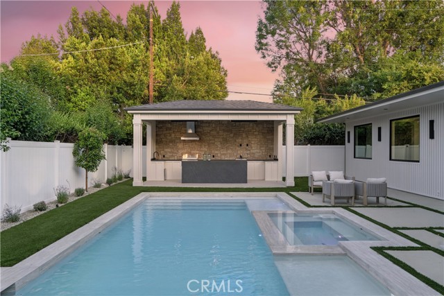 Experience an extraordinary newly constructed estate that redefines modern elegance in the heart of Encino. Completed in 2025 by one of the area’s most acclaimed builders, this architectural modern farmhouse is a sanctuary of artistry, design, and comfort. From the moment you arrive, the gated entrance and striking curb appeal set the tone for what lies beyond. Inside, soaring ceilings, a dramatic stone feature wall, and wide-plank European oak floors create a seamless blend of grandeur and warmth. Venetian plaster finishes, designer lighting, and custom millwork highlight the impeccable craftsmanship throughout. The gourmet kitchen is nothing short of breathtaking, showcasing imported porcelain countertops, an oversized island with smart storage, professional-grade appliances, and a wine & beverage cooler. The dining room dazzles with a built-in glass display cabinet with sleek black framing and soft backlighting, a gallery-like feature perfect for luxury dining, the expansive family room centers around a statement fireplace, evoking the serenity of a Tulum resort while capturing the sophistication and relaxed elegance of modern California living.The private backyard five-star retreat includes: sparkling pool & spa, outdoor kitchen with BBQ, bar seating, and a covered patio with heaters, perfect for year-round entertaining. A 2-bedroom ADU offers complete independent living with its own kitchen, bathroom, and living room. With both a private side entrance and sliding doors to the backyard, ideal as a guest house, office, or pool cabana. The main level also features a cinema room designed for the ultimate movie night experience, ensuite guest bedroom, mudroom & a stylish powder room. Ascend the floating staircase, accented by an impressive indoor garden seamlessly blended into the floor design & illuminated with lighting, leading to 4 spacious ensuite beds upstair, including a luxurious primary retreat with a rooftop-style balcony, fireplace, oversized walk-in closet, and spa-inspired bath with soaking tub, dual rain shower, and dual vanities. Additional amenities include a smart home system with speakers, security cameras, alarm, and gated driveway with intercom. Located within the Encino Charter Elementary district and moments from Ventura Blvd’s premier dining and shopping with effortless freeway access, this estate embodies the best of design, lifestyle, and location. This is not just a home, it’s a statement of elegance, artistry, and elevated living.