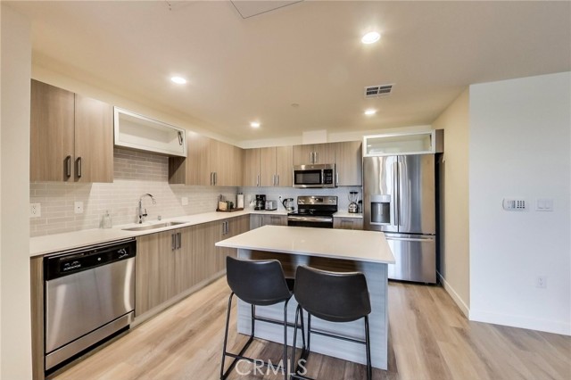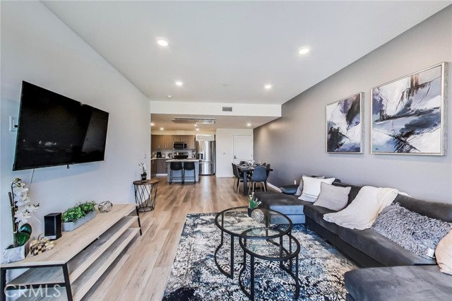 PENTHOUSE !! A true toast to modern living in North Hollywood CA! The stage has been set for this stylish and contemporary property that spans roughly 1573 sq.ft of comfortable living space. This rare 3 bedroom, 2 bathroom condo offers a blend voguish sophistication and chic coziness that you can find nowhere else on the market. Its features include: an open floorplan, LED recessed lighting, newer AC, high-ceilings, modern kitchen w/large center island, quartz counter tops, new appliances, engineered wood flooring, spacious bedrooms, walk-in closet, fully updated bathrooms w/quartz counter tops, updated cabinets, in-unit laundry (stackable washer/dryer), private balcony deck, dual pane windows for energy efficiency, wheelchair accessible, underground garage parking (2 spaces/tandem), and so much more. Close to the popular NOHO Arts District, this rare beauty is only a heartbeat away from local restaurants, cafes, shopping, nightlife, and entertainment. SoCal Living at its finest !