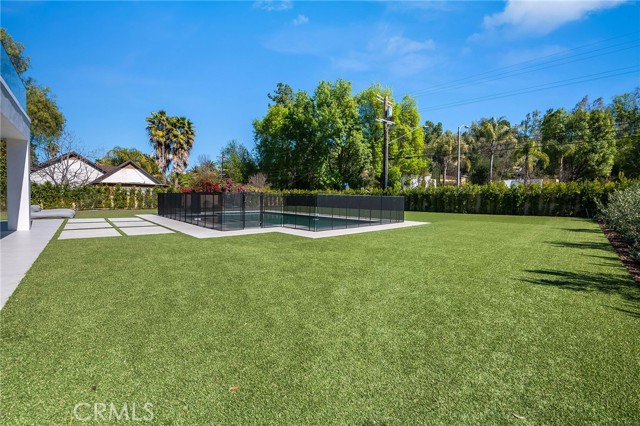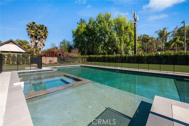 Gorgeous 8000 ft.² Sprawling Modern New construction home South of Boulevard! Fully furnished, this home is truly a showstopper!!! Fully gated and secure, this signature home is located on a lovely peaceful street in Tarzana. This home has the WOW! The stunning entry introduces the modern elegance resonates through the space, greeted by wall of glass opening up to the drive expansive backyard. With soaring ceilings and large living spaces, this home is Engineered for entertaining and family gathering. The kitchen is the refined and spacious anchor, facing a gorgeous 10 seat dining table. Sink into the expansive casual family room that opens into covered back patio, or choose the most intimate bar area to entertain, lounge and relax. All the bedrooms outfitted with king size beds, including the downstairs guest, which afford privacy and convenience. Upstairs you will find a designated comfortable workspace with adjoining balcony and seating area, a luxurious primary suite with 2 walk in closets and wrap around balcony. All the secondary bedrooms are large beautifully appointed, with walk-in closets. The backyard and pool area provides a variety of different lounging areas and dining alfresco is a must! A gorgeous, sparkling pool and space to entertain and enjoy is priceless! 12-month lease, with short-term options open for discussion.