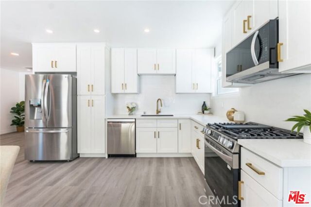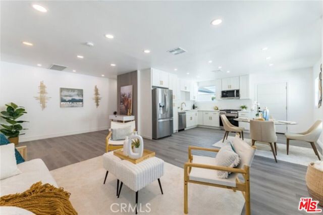 This 3Br-2Ba Home Rental Property boasts exceptional curb appeal and features a pristine open-concept floor plan with recessed lighting and complementary new flooring. The spacious living room is filled with natural light, creating a warm and inviting atmosphere. The stunning all-white kitchen is equipped with abundant cabinets, ample counter space, brand new stainless steel appliances, and an adjoining dining area. WATER AND GAS INCLUDED IN LEASE /PAID BY OWNER. Brand new central air and heating ensure year-round comfort. This stunning home includes three bedrooms, two bathrooms, including a primary bedroom that opens to a spacious and beautiful backyard. This area is perfect for enjoying quiet mornings with coffee or hosting weekend gatherings with family and friends. Conveniently located near schools, restaurants, grocery stores, parks, Canyon Plaza Shopping Center, and the 5 and 170 freeways. 2 PARKING CAR PORT SPACES INCLUDED. Everything is brand new! This is the main house.