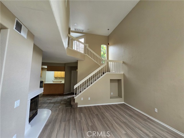 Seacove Place: 3 Bedrooms 3 Full Bath Attached Townhouse, Kitchen with Maple Wood Cabinets, Breakfast Bar, Black Appliances, Stove, Dishwasher, Microwave Hood, Separate Dining with Ceiling Fan, Recessed Lighting, Vinyl Planking Downstairs, and Carpet upstairs, Gas Burning Fireplace with Mantel, Livingroom with 20ft Ceilings, 2in Faux Wood Blinds, All Bedrooms with Ceiling Fans, Light Fixtures, Master Bedroom with Walk in Closet, Mirror Closet Doors, Patio Off Livingroom, Laundry Hook-up’s, Single Attached Garage with Opener, 1 Extra Assigned Parking Space, Community Pool, Spa, Clubhouse, Near Coyote Park and Aliso Viejo Country Club. (Note: 1 Bedroom and 1 Full Bath Downstairs)