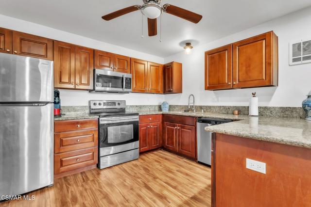Just one block from Port Hueneme Beach and Pier, this beautifully maintained single level 2 bedroom2 bath condo offers the perfect blend of comfort, convenience, and coastal living. Freshly painted and move in ready, the home features an inviting open layout with a bright living and dining area, granite kitchen countertops, newer cabinetry, and convenient in unit laundry. All bedrooms and bathrooms are located on the same level, making this home ideal for easy living. A private patio off the living room provides additional outdoor space for relaxing or entertaining.Enjoy resort style community amenities including a sparkling pool and spa, tennis court, clubhouse, picnic and barbecue areas, and lush landscaped grounds. Assigned covered carport with storage plus guest parking available. The HOA covers sewer, trash, exterior maintenance, and access to all shared amenities for a low maintenance lifestyle. Conveniently located near the Port Hueneme Naval Base, shopping, dining, and with easy access to PCH and Highway 101. This is a wonderful opportunity to own a turnkey coastal home just moments from the sand.