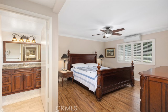 This two-bedroom, two-bathroom condo offers approximately 1,077 square feet of living space. The single-level home is situated within the Laguna Woods 55+ gated community and features the Casa Vista model(lower level).The remodeled kitchen showcases updated finishes and fixtures, providing a functional and modern cooking space. Laminate flooring flows throughout the home. The water heater is newer. Two AC split units have been included for your comfort. The upgraded bathrooms incorporate stylish elements, enhancing the overall comfort and convenience of the home.From the property, residents can enjoy a view of the surrounding hills, offering a tranquil and scenic outlook. Additionally this home is located towards the end of a cul-de-sac. The well-maintained community amenities and secure gated environment contribute to a comfortable and carefree lifestyle. Amenities include: 6 clubhouses, 5 swimming pools, Performing Arts Center, fitness centers, tennis, bocce ball, pickle ball, art(pottery, photography, glass, lapidary, jewelry, painting) and so much more!