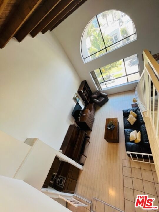 Beautiful bright top floor penthouse two story condominium unit with high ceilings in prime Beverly Hills. Master bedroom, 2nd bedroom, two bathrooms, Living, Dining room, & Kitchen on the first floor. Stairs lead up to 2nd floor where the hallway leads to private spacious outdoor patio and also the 3rd bedroom/or office. Feels like a single family home. Washer/Dryer in the unit. Central A/C & Heat. Building amenities include outdoor pool, elevator. Two car tandem underground gated parking. Great city & street views in living and dining room areas. Located less then a block away from the Beverly Hills La Cienega Park and minutes to the Beverly Center, Rodeo Drive, The Grove, L.A.C.M.A, & other Museums. Close to houses of worship. Unit can also be delivered mostly furnished for an additional $500 per month.