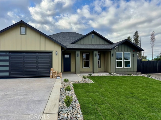 Welcome to this stunning new construction home in the heart of Paradise, CA — a community known for its resilience, beauty, and strong sense of renewal. Located near beloved Bille Park, this home offers distant views of Butte Creek Canyon and glowing sunset skies from the front yard. The exterior features professional landscaping, a spacious concrete driveway, dual storage parking access on each side, and full RV hookups on one side of the home. Inside, you’ll find vaulted ceilings with warm fluted wood accents, a stylish kitchen showcasing leathered quartz countertops, white oak cabinetry, upgraded appliances, and a walk-in pantry. The primary suite is privately positioned on one end of the home, featuring a large walk-in closet with custom shelving and a dreamy spa-like bathroom. The remaining bedrooms are located at the opposite end, along with a spacious hall bath offering ample storage. A beautiful blend of craftsmanship, comfort, and thoughtful design — this home reflects the very best of what makes Paradise such a special place to live.