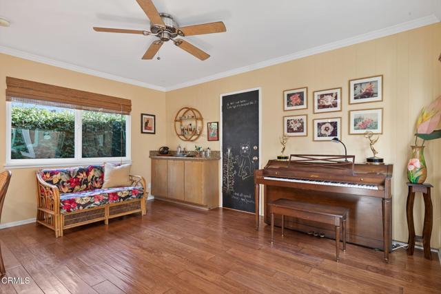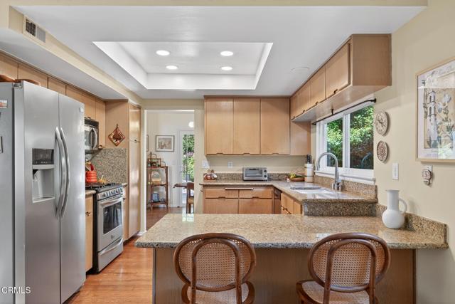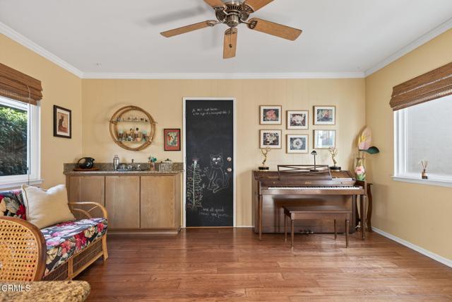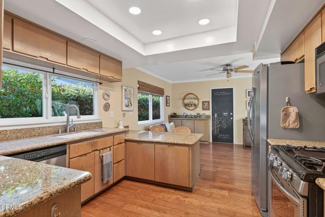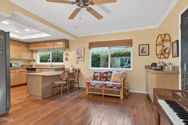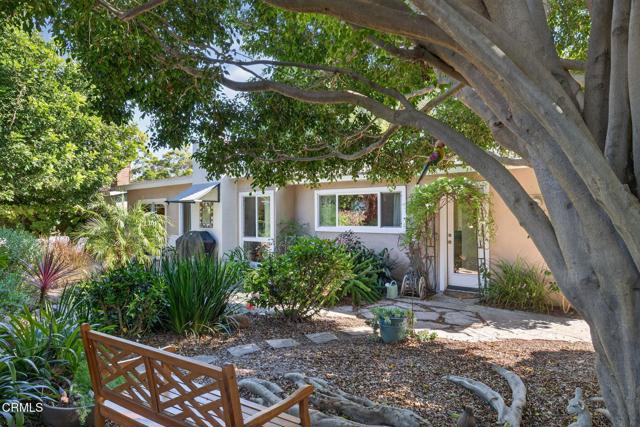 Welcome to this inviting Mid-Century modern single-family home located in one of the most desirable neighborhoods below the college! Thoughtfully maintained and full of charm, this spacious residence offers an open-concept layout that's perfect for comfortable living and entertaining. Step inside to a bright and airy living room featuring a beautiful brick fireplace, engineered hardwood oak floors, and scraped ceilings throughout. A separate den provides additional living space--ideal for a home office, playroom, or media area. The kitchen features stainless steel appliances, plenty of cabinetry, and direct access to the dining area that opens to a private backyard and patio--a perfect spot for outdoor dining or relaxing among mature park-like landscaping with orange, tangerine, lemon, and lime trees. You'll love the large bedrooms, including a primary suite with a small walk-in closet, and a beautifully remodeled hall bathroom (2025). The home offers dual-pane energy-efficient windows, lots of storage, and a recently painted interior (2024) for a fresh, move-in ready feel. Other important upgrades include a newer water heater (2024), owned water softener, circulating pump, and new window trims (2023). Outside, the private yard feels like your own retreat--lush, serene, and ready to enjoy. This is a wonderful opportunity to own a well-cared-for home in a sought-after location close to highway, schools, shopping, dining, and the college. Don't miss out!