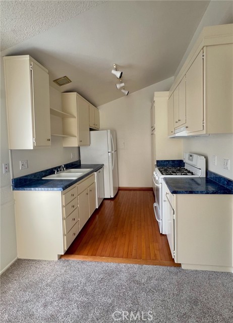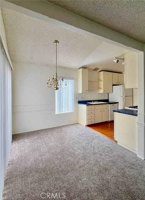 Welcome to your peaceful retreat in the heart of Santa Ana! This bright and inviting 1 bedroom, 1 bath condo is nestled within the beautifully maintained Cabrillo Park community - known for its winding walkways, mature trees, and a tranquil creek that flows throughout the property. Enjoy the open living space that leads to two private balconies - perfect for morning coffee, outdoor dining, or simply soaking in the park-like views. The serene surroundings make this home feel like a getaway while keeping you close to everything you need. Inside you'll find a spacious living room with new carpet and decorative chair rail trim. The kitchen is galley style with a pantry, plenty of cabinet space, free-standing range, dishwasher and a refrigerator. The dining area is situated between the kitchen and rear patio - choose to dine with the afternoon breeze or alfresco. The bedroom is tucked away on the opposite side of the unit with mirrored closet doors and a hallway that leads to the full bath with a tub/shower combo, tiled vanity with plenty of storage and a privacy glass window that allows natural light to flow through. Community amenities include a sparkling pool and spa, fitness center, clubhouse, and multiple laundry rooms for added convenience. Centrally located near shopping, dining, and freeway access, this condo offers a peaceful upscale lifestyle with everyday practicality.