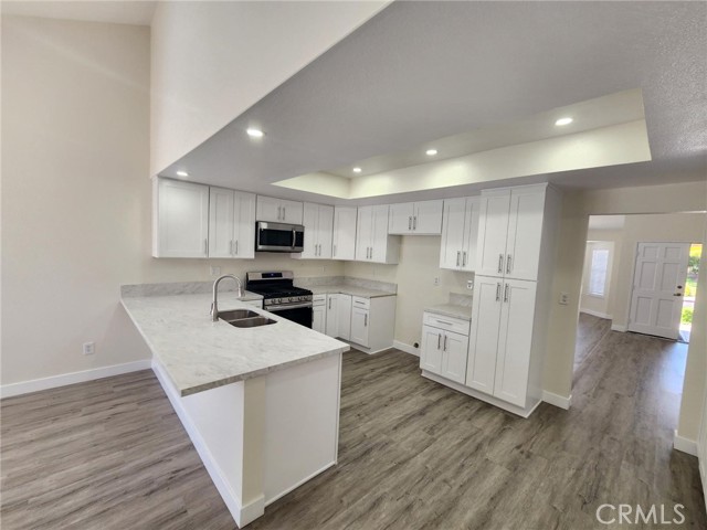 Beautiful: 3 Bedroom 2 Bath Single Family Home, Gorgeous Open Concept Kitchen With White Shaker Cabinets, Quartz Countertops, Breakfast Bar, Pantry, Stainless Steel Appliance, Stove, Dishwasher, Microwave Hood, Separate Dining, Family Room With Brick Fireplace, Vaulted Ceilings With Recessed Lighting, Vinyl Planking, Carpet in Bedrooms, 2 in Faux Wood Blinds, Bathroom Vanities W/ Shaker Cabinets and Quartz Countertops, Master Bathroom with Dual Sink, Roman Tub, Walk-in-Closet, A/C, Attached Double Car Garage with Opener, Built in Cabinets, Laundry Hook Up’s, Large Backyard, Community Pool, Spa, Club House, Tennis Courts, Near Coyote Hills Park, West Coyote Hills Park, Schools, Shops And More.