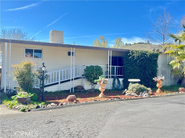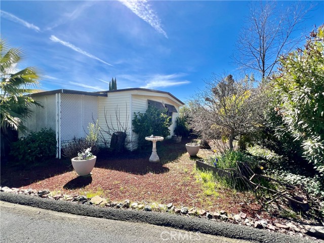Welcome to this well-maintained 2-bedroom, 1.5-bathroom manufactured home, perfectly situated in a peaceful 55+ community. Built in 1972 this home offers one of the largest lots in the park, providing extra space both inside and out—a rare find! The primary bedroom includes a convenient bath with shower, while the second bedroom is perfect for guests or a home office. Enjoy your mornings or evenings on the covered porch, and take advantage of the additional outdoor space for gardening or leisure. With easy access to community amenities and nearby shopping, dining, and medical facilities, and close to Clear Lake the largest natural lake in California. This home is ready for its next owner. This is your opportunity to own a larger home in the park at an unbeatable price. Space rent includes garbage. Propane and water is billed by the park along with space rent.