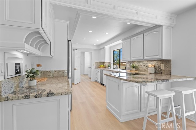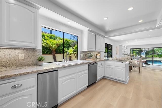 Welcome to 21 Santa Catalina Dr, Rancho Palos Verdes! Situated in the exclusive Island View community, this single-level 4 bed, 3.5 bath home offers nearly 3, 000 sq ft of refined living on a 15, 600+ sq ft lot. A grand entry opens to light-filled living spaces with high ceilings, two fireplaces, formal dining, and a spacious family room with wet bar. The updated kitchen features granite counters, stainless appliances, and a sunny breakfast nook. The primary suite boasts dual walk-in closets and a spa-like bath, while additional bedrooms provide flexibility for family, guests, or a home office. Recent improvements include fresh interior paint and new luxury vinyl plank flooring throughout, making the home move-in ready. Outside, enjoy a resort-style backyard with saltwater pool, spa, mature fruit trees, and peek-a-boo ocean views. A 3-car garage with built-in storage adds convenience. Perfectly located near top PV schools, parks, and scenic coastal trails this property offers both elegance and comfort for todays lifestyle.