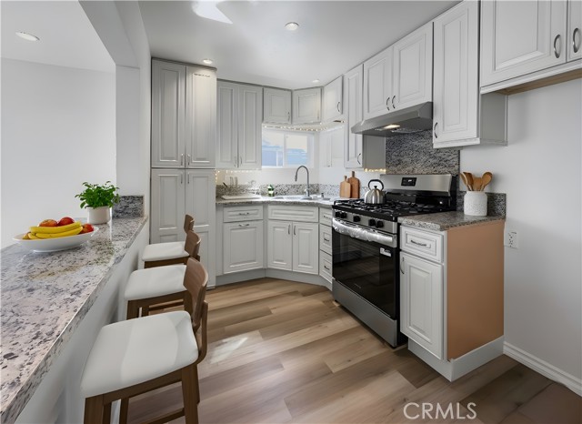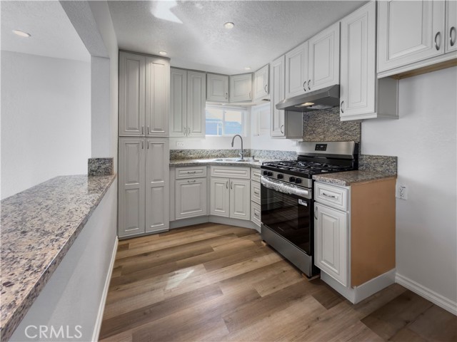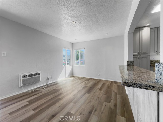 Discover this charming, standalone 1-bedroom, 1-bath house offering comfort and modern convenience. The interior has been recently updated with stylish, wood-look flooring throughout the open-concept living space and a bright, fresh coat of paint. The kitchen is a highlight, featuring granite countertops, sleek white cabinetry, and modern stainless steel appliances, including a gas range, all centered around a convenient breakfast bar. The spacious bedroom provides a private and well-lit retreat. Step outside to your expansive, private paved yard, perfect for secure parking, outdoor dining, or relaxation. This property also includes a separate storage shed and the privacy of a single-family residence, making it an ideal find.