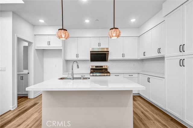 Experience contemporary living at its finest in Nova at The Resort — Rancho Cucamonga’s premier master-planned community blending modern design with resort-style amenities. This stylish tri-level home features 3 bedrooms, 2.5 bathrooms, and 1,387 sq ft of thoughtfully designed space filled with natural light and sophisticated details. The open-concept main level highlights engineered wood flooring, recessed lighting, and a chef-inspired kitchen with quartz countertops, subway-tile backsplash, stainless-steel appliances, and a large center island perfect for entertaining. Upstairs, the primary suite offers a dramatic navy accent wall, a spacious walk-in closet, and a spa-like bath with dual sinks and a glass shower. Two additional bedrooms showcase elegant tones and plush carpeting, ideal for guests or a home office. Additional features include hallway cabinetry, a dedicated laundry room, and a two-car epoxy-finished garage. Enjoy access to a resort-style pool, spa, fitness center, yoga studio, clubhouse, BBQ areas, and dog parks—all within minutes of Ontario Mills, Victoria Gardens, and major freeways.