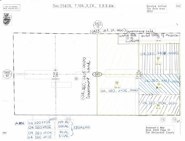 This exceptional ±580-acre land portfolio is located in the high-growth corridor of Barstow, California — just minutes from Interstate 15 and Interstate 40, and near the upcoming BNSF Barstow International Gateway (BIG) logistics hub. The property features flat to gently rolling terrain, paved road frontage, and vacant land zoning that allows for single-family homes (5-acre minimum lots), agriculture, equestrian, and renewable energy uses such as solar or wind farms. With its convenient access and proximity to major transportation routes, this site offers excellent potential for development or long-term investment. Centrally positioned between Los Angeles and Las Vegas and only 30 minutes from the Mojave Solar Project, the land provides panoramic desert and mountain views with utilities available nearby. Its size, zoning flexibility, and strategic location make it ideal for a wide range of future uses — including rural residential subdivision, renewable energy projects, or land banking. This is a rare opportunity to secure a large contiguous ownership in one of California’s most promising desert growth markets.