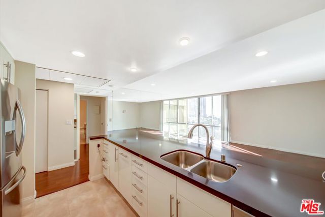 NO COMMON WALLS. QUIET CORNER LOCATION. NO CITY TRAFFIC NOISES. MANY LARGE FITTED CLOSETS. FREE CENTRAL AIR CONDITIONING. FREE VALET & GUEST PARKING. ONE BLOCK TO NEW "D" LINE SUBWAY STATION. Smartly renovated with quartz counters, stainless steel appliances, new European style high gloss cabinets, newer luxurious bathroom including decor vanity, separate bathtub and crystal stall shower, walk-in and wardrobe closets, mahogany real hardwood floors throughout the condo. Semi-obstructed ocean & city views. Extra-large master bedroom. Light and bright all day long. Heating, Air Conditioning, Hot & Cold Water is included. Enjoy 24 hr. valet & guest parking, huge, heated pool and sun deck, tennis court, private pet playland, state-of-the-art private fitness center & saunas, doorman, houseman, switchboard, large security staff, business center, acres of flower gardens and grassy lawns. 2 blocks to Westfield Regional mall, movies, dining, markets, banks, hotels, city parks, golfing, Rodeo Drive & Beverly Hills, Westwood and nearby UCLA and Cedars Sinai Regional Medical Campuses. 10 minutes to UCLA. 20 minutes to LAX or USC. Available November 16, 2025. Also for sale.