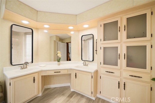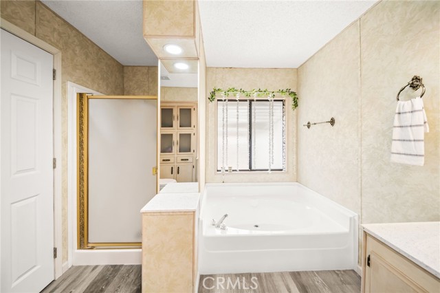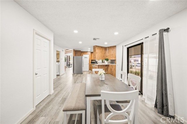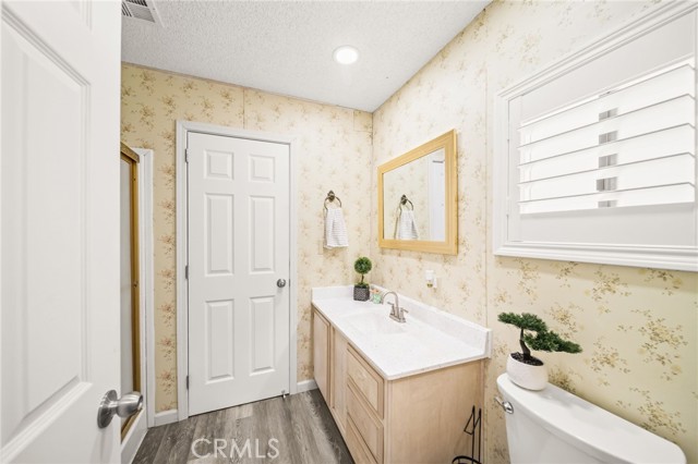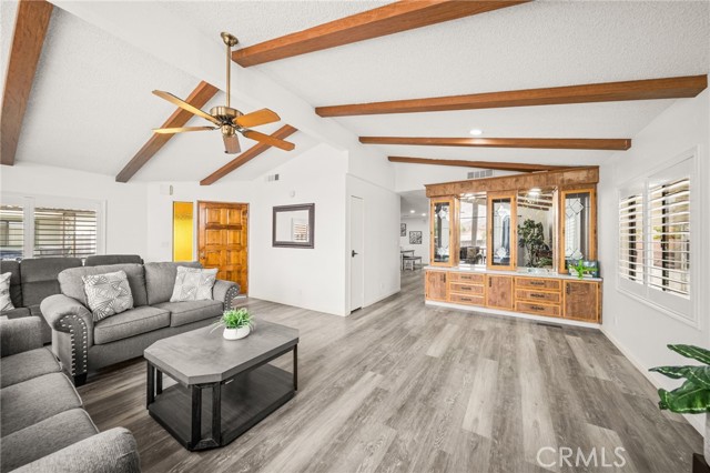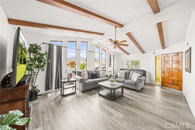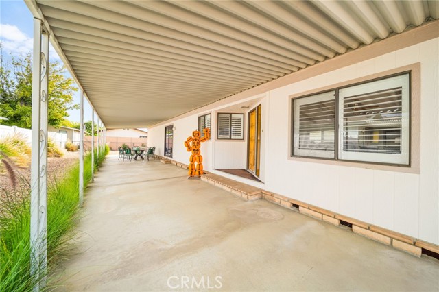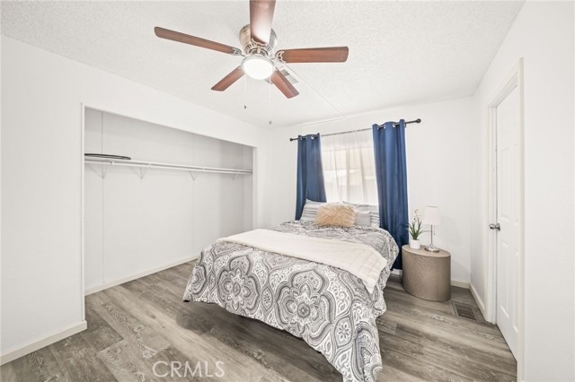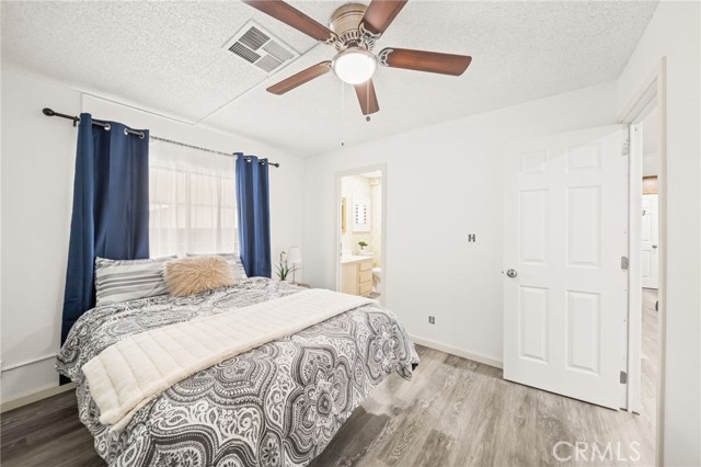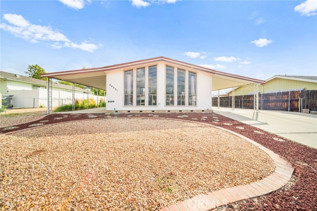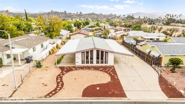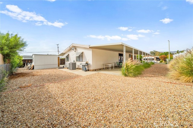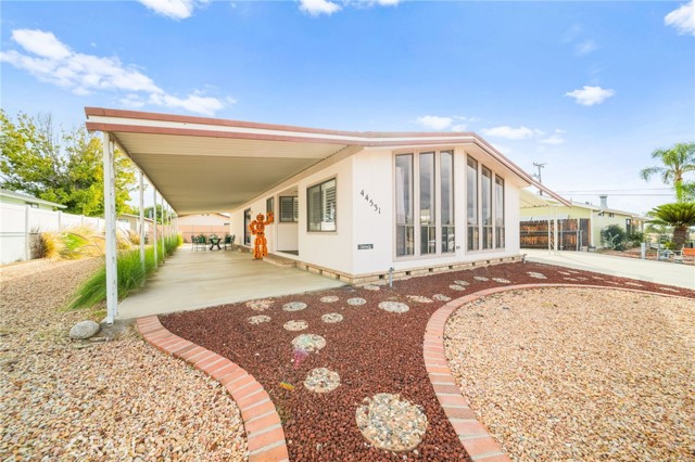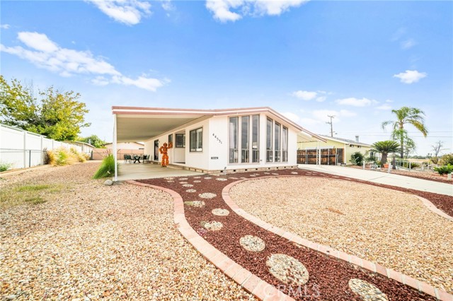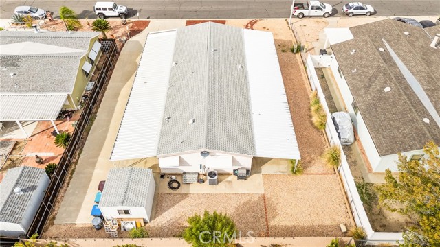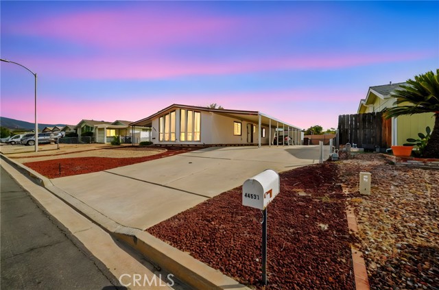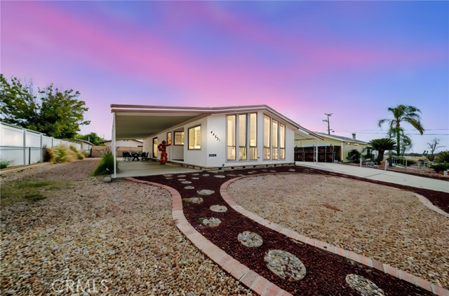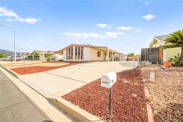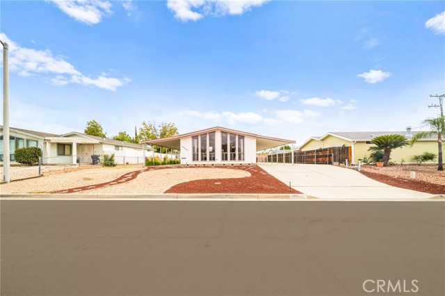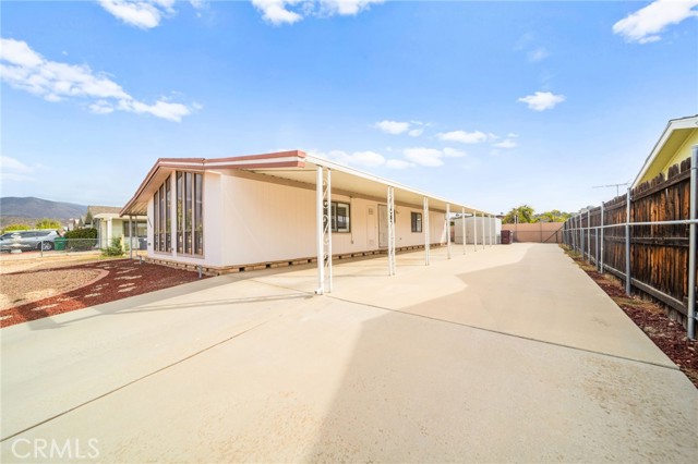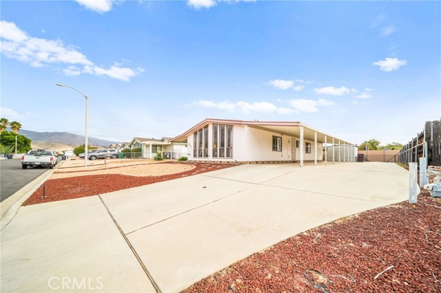 Mountain Views & Land Ownership in Hemet! Enjoy stunning San Jacinto Mountain views from this spacious 2-bedroom, 2-bath manufactured home on a 7,405 sq. ft. lot — you own the land! Featuring 1,440 sq. ft. of open living space with NEW laminated flooring throughout, New shutters, New recessed ceiling lighting, vaulted ceilings, abundant natural light, and a bright kitchen that opens to the dining and family areas. The primary suite includes a dual-sink vanity, soaking tub and a standing shower. The second bedroom has a jack and jill bathroom, while the backyard offers low-maintenance landscaping, a storage shed, and ample parking for up to 8 cars, an RV, or a boat. Located in a quiet neighborhood with no HOA or age restrictions, you own the land, just minutes from Mt. San Jacinto College, Soboba Casino, and Diamond Valley Lake.
