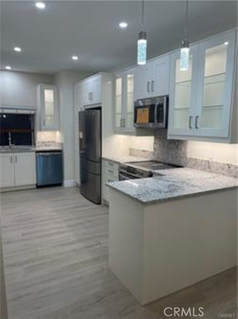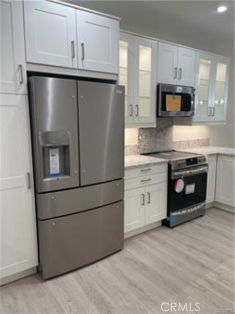 Stunning two story townhouse in a serene garden setting.No expense was spared with modern upgrades throughout. Imagine having breakfast in the kitchen while peering out a beautiful bay window overlooking a wooded hillside. Wonderful Oak Park Community schools. Take your dog for a stroll in the dog park and jump into the community pool. Available for lease just in time for the summer. Walls are painted soft warm contrasting colors that compliment the vinyl planked floors. Kitchen & laundry room remodeled with white shaker style cabinets & granite counters. All appliances replaced with stainless steel, washer dryer is a stackable LG, french door style fridge with filtered water & a center drawer that can be used as part of fridge or freezer. Kitchen sink is amazing with its extra deep design. There is an island with pendulum lighting. The cabinets with glass doors have lighting to showcase favorite things. Two pantries for lots of storage. Laundry room has counter space with an outlet perfect for a coffee maker, espresso machine or printer. Gas fireplace was redone with elegant brown marble & glass stones. All lighting was replaced with a combination of energy efficient recessed lights throughout as well as unique light fixtures. Dramatic globe shaped light fixture was added to the stairwell which illuminates the area in a nice warm glow. Even the front porch light was replaced with a beautiful lantern style design.Both master bedrooms have upgraded ceiling fans with lighting that can be operated by a switch or remote. Each master bedroom has a private balcony that faces the hillside.Both master bathrooms have skylights over the vanity for natural lighting. Each master bedroom has a walk in closet with built in shelves for added storage. Bathrooms are remodeled to look individually unique with a contemporary flair to include new light fixtures, vanities, mirrors, medicine cabinets, towel racks & towel hooks, shower doors, all the shower tub fixtures are replaces with water efficient styles. In 2022, upgraded a/c & heater & water heater with energy efficient models operated by a Nest thermostat. Garage has recessed lights and a keyless entry pad. Townhouse comes with 2 parking spaces, one is in a single car deep detached garage & a covered carport that is located close to the entry. Ample guest parking. Submit on pets. Walking distance to several awarding winning schools, parks, community center, dog park, shopping centers, library.