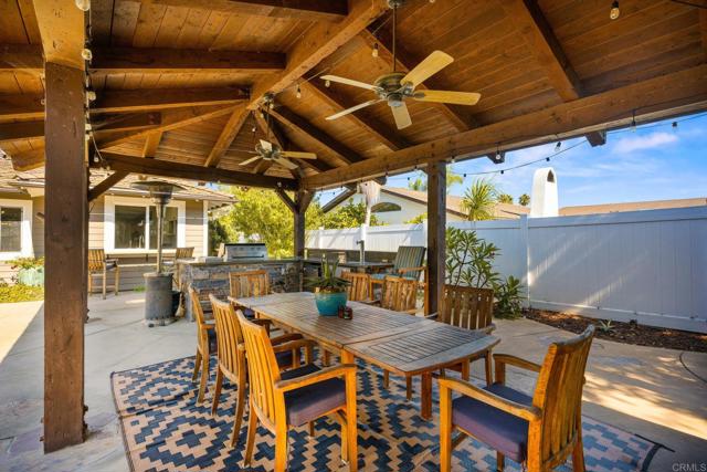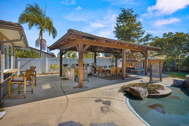 Beautifully updated single level Craftsman style home nestled in the heart of Carlsbad’s highly sought after La Costa neighborhood has no HOA or Mello Roos. This inviting 4 bedroom, 3 bathroom residence blends timeless charm with modern upgrades, offering the perfect setting for relaxed coastal living. Step inside to discover a fresh, open interior featuring Luxury Vinyl Plank flooring, tastefully updated bathrooms. Central air conditioning ensures year round comfort, while the thoughtfully designed floor plan flows seamlessly into the outdoor living space ideal for entertaining or simply unwinding. Enjoy evenings outside by the cozy two sided fireplace under the covered outdoor kitchen, fire up the built in BBQ, or take a dip in the pool or jacuzzi surrounded by lush landscaping, including your own avocado and citrus trees. Located just minutes from the beach, top-rated schools in the Encinitas School District, local restaurants, shopping, and easy freeway access, this home truly has it all. Don’t miss the opportunity to make this exceptional La Costa retreat your own.