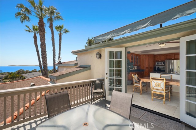 Experience refined coastal living in this ocean-view residence, ideally located in one of Laguna Beach’s most desirable neighborhoods. Just a short stroll from acclaimed restaurants, art galleries, world-renowned beaches, and the vibrant heart of Laguna Village, this timeless home offers the ultimate blend of charm, lifestyle, and convenience. The property beautifully combines classic architectural character with modern comforts. Offering four bedrooms and three-and-a-half bathrooms, the flexible floor plan includes a separate entrance to the lower-level rooms, ideal for guests, extended family, or a creative studio space. A main-level bedroom allows for single-level living and connects to an additional room that can serve as a den, media room, or family room, with access to a spacious finished storage area. At the heart of the home, a sunlit family kitchen with ample storage opens to a generous ocean-view deck—perfect for al fresco dining, garden views, and breathtaking sunsets over Catalina Island. A flat grassy yard and mature landscaping create a peaceful, private outdoor retreat. The primary suite is a tranquil sanctuary, featuring sweeping ocean views, natural light throughout, vaulted ceilings, and an oversized skylight that fills the space with sunshine by day and starlight by night. The en-suite bath offers garden views, a soaking tub, and a separate shower for a spa-like experience. The home’s prime location makes it easy to leave the car behind and explore magnificent beaches, scenic parks, and the celebrated restaurants, cafe´s, galleries, and boutiques that make Laguna Beach such a coveted destination. This property promises an unparalleled coastal living experience.