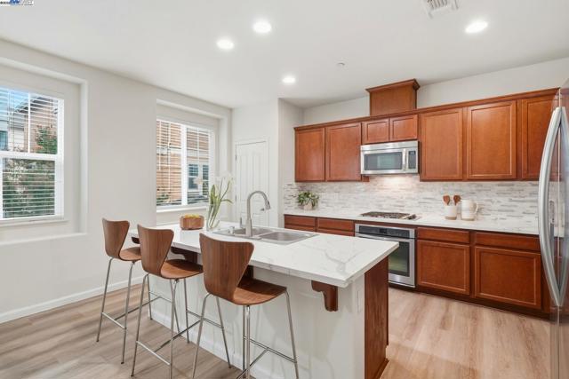 Welcome to this gorgeous Emerald Vista detached single-family home — one of the most affordable and desirable newer homes in Dublin! This beautifully updated 4-bedroom, 3.5-bath home features brand-new hardwood floors, fresh paint, and an open, light-filled layout. The first floor offers a bedroom with a full bath, ideal for guests or extended family. The second floor includes a bright living and dining area, a half bath, and a gourmet kitchen with stainless steel appliances, granite countertops, center island, and pantry. Upstairs, the primary suite showcases dual vanities, a soaking tub, separate glass shower, and a walk-in closet. Conveniently located minutes from freeway access, Dublin Library, parks, Costco, Walmart, Trader Joe’s, HomeGoods, and the Livermore Premium Outlets. Walking distance to top-rated Dublin High School. A move-in ready home offering modern upgrades, a prime location, and exceptional value — a rare find in Dublin!