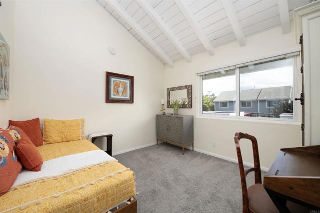 Welcome to your own corner of paradise—West of the 5 in the heart of Carlsbad Village! Nestled between the Pacific Ocean and Buena Vista Lagoon, this charming corner-unit townhome captures the essence of coastal living, with ocean breezes and peaceful views. The light-filled interior features vaulted ceilings, an inviting living room with fireplace, and an upgraded kitchen with granite countertops, dining area, and plenty of storage. The kitchen and living spaces flow seamlessly to a private patio—perfect for morning coffee or relaxing by the fire pit with a glass of wine. Upstairs, expansive windows in the primary suite offer peek ocean and lagoon views that make every day feel like a vacation. Two additional spacious bedrooms provide abundant natural light and flexibility for children, guests, or home office. Complete with a finished one-car garage attached to the patio, plus an adjacent, assigned parking space, this home is just a short stroll to Carlsbad’s beaches, shops, theater, art gallerys, and fine dining. This low-density community is located in the heart of Carlsbad's award winning school district. This is Coastal Village living at its finest.