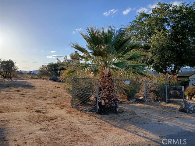 Residential lot with active water meter and running water (hose bib). Future waste-water capacity (sewer) charge is paid with JTWB. Fenced, landscaped, and graded lot totaling approx. 11,695 SF (0.27 acres). Completed boundary survey. Appreciable views to the south and west. Conejo Road backs up to a wash that will not be built on and provides open space for star gazing and sunsets. Walking distance to Joshua Tree Village. Joshua Trees located towards the rear of the parcel; four ocotillo trees planted within the last two years. Mature tamarisk trees produce music in the wind on a quiet summer day. Unique property for your real estate portfolio.