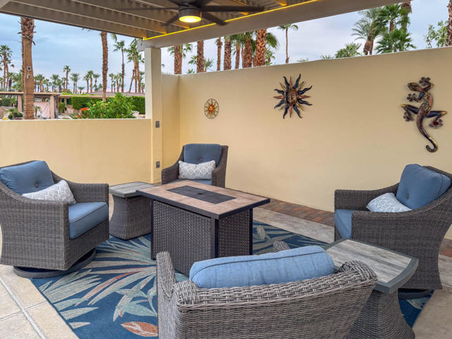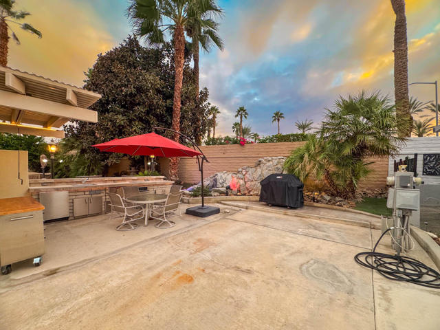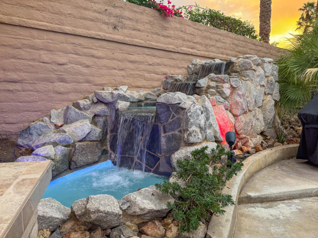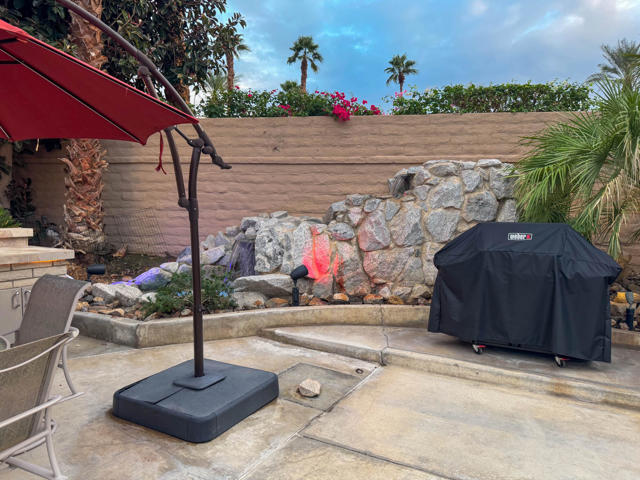 Enjoy the soothing ambient sound of the multi-level waterfall just behind the lot, creating a peaceful and private outdoor retreat. This beautifully appointed motorcoach lot features an Alumawood pergola with a new polycarbonate roof skin and a two-year-old privacy wall wired for a TV, expanding your outdoor living space. The medium outdoor kitchen with new Weber BBQ, custom covers, tile accents, and a ceiling fan makes entertaining easy. Thoughtful details include beautiful landscaping and a custom-designed pet area with a French drain, perfect for pet owners. Well-shaded with warm evening lighting, the lot offers comfort day and night. Ideally located across from the satellite pool, hot tub, sauna, and laundry, it also benefits from extra guest parking and restrooms just steps away, making it perfect for hosting friends. Priced to sell as-is, this property delivers strong value in a premier luxury Class A motorcoach resort.Outdoor Resort Indio is a class A only RV resort.