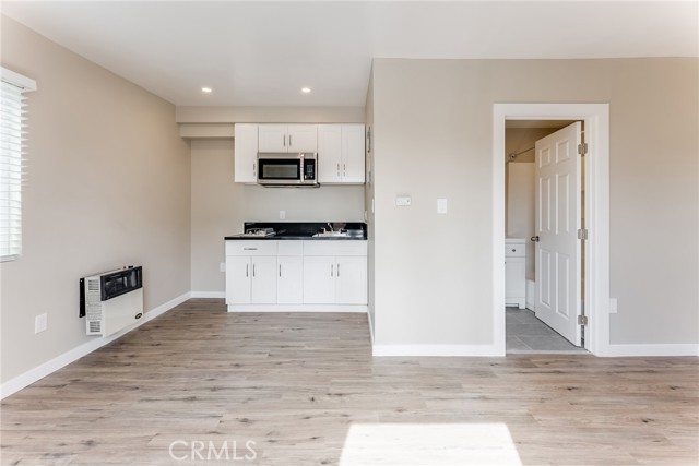 Remodeled Cozy Studio with attached bathroom. Kitchenette with modern cabinets, quartz counter tops, Refrigerator and Microwave. Bathroom with modern vanity, bathtub and Closet. Laminate flooring throughout. Ideally located between 5 Fwy and 170 Fwy for all you commuters, close to all the shopping and restaurants. Unit is move-in ready with Refrigerator, Microwave, stove, wall mount AC and Heater. Gated open parking spot is available with this unit and its ready to move-in immediately.