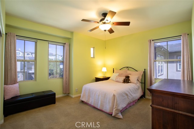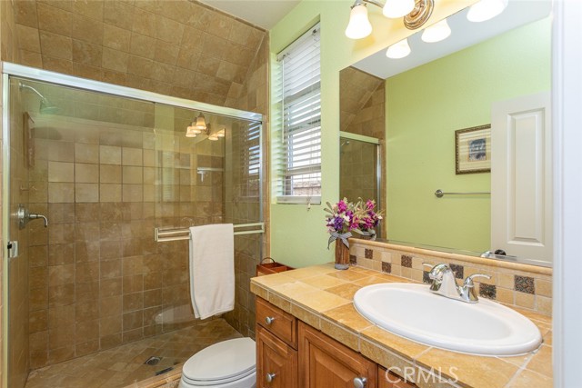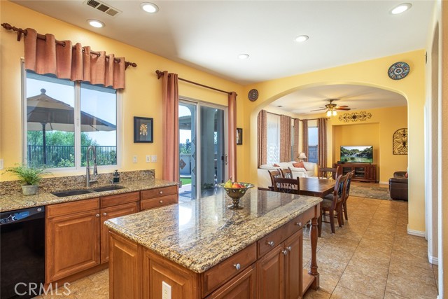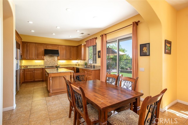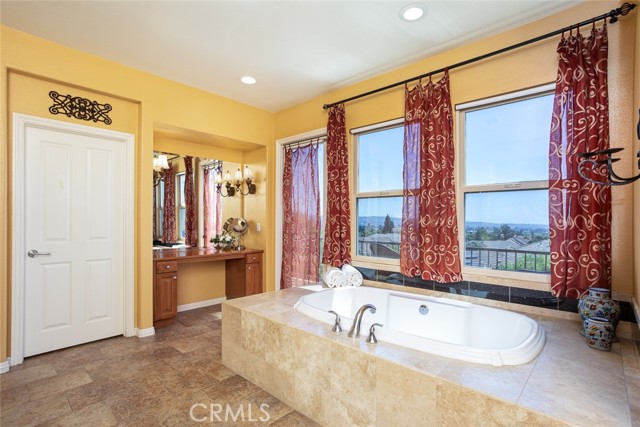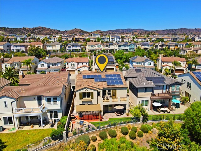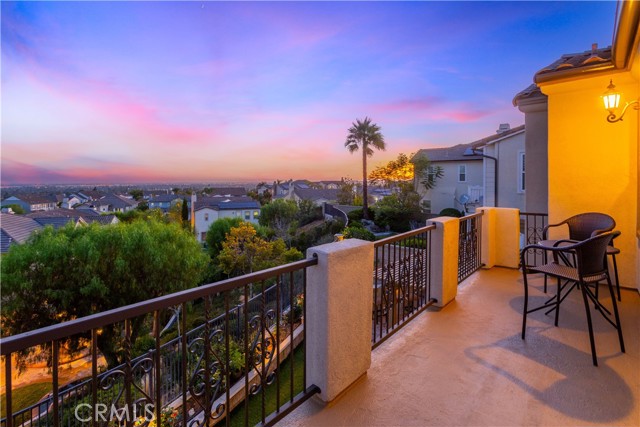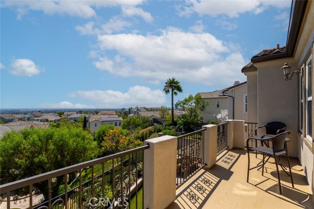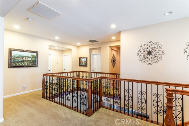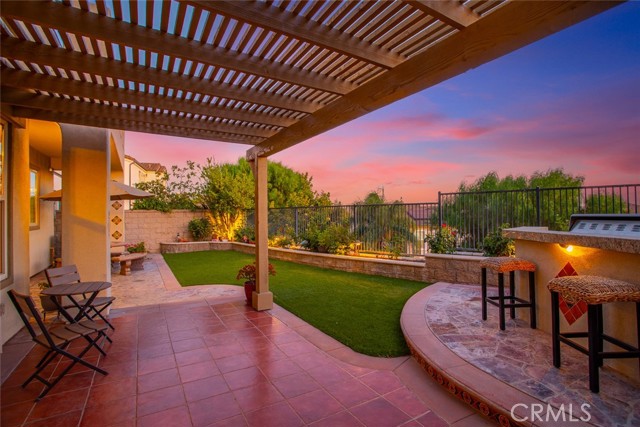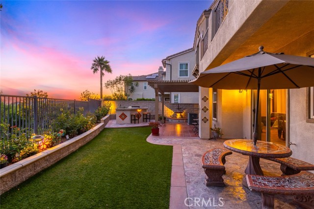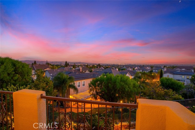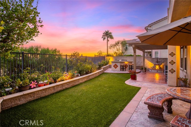 This turnkey estate, featuring distinguished Spanish architectural elements, is located within the prestigious Foxfield development of Vista del Verde. Model 2 offers a highly desirable floor plan with thoughtful upgrades that suit various lifestyles. The residence encompasses 3,920 square feet of living space, including four spacious bedrooms and two and a half bathrooms, as well as an attached GOUND LEVEL IN-LAW SUITE/CASITA (5TH Bedroom) with a private bathroom and separate entrance for added versatility. Upon entering the grand foyer, residents are welcomed by soaring vaulted ceilings and an open living room anchored by an arched gas fireplace with a pre-cast concrete mantel, surround, and hearth. Architectural highlights include dramatic ceilings, soffits, graceful arches, and a custom-crafted staircase with stained maple handrails and upgraded wrought iron balusters. The home features a large interior laundry room equipped with a deep sink and custom storage cabinetry. The gourmet kitchen is designed with a center island overlooking the dining area, extensive custom storage, a walk-in pantry, a five-burner cooktop with vented hood, double oven, built-in refrigerator, microwave, and dishwasher. The elegant dining room, bathed in natural light, is ideal for entertaining. Upstairs, the builder-option loft creates an inviting and flexible space suitable for a game room, office, study area, or home gym. The master suite includes a luxurious bathroom, private dressing area, walk-in closet, dual sinks, an oval soaking tub, and a separate walk-in shower. A walk-out balcony from the master bath provides impressive sunset and city light views. The backyard is designed for entertaining, with drought-tolerant landscaping, concrete pathways, a rose garden, a covered patio with an island, and a stainless steel BBQ with an additional burner and sink. The exterior is enhanced by stone accents, ornamental wrought iron fixtures, wood shutters, and elegant arches. The in-law suite stands out as a valuable amenity, offering private access, a spacious closet, a niche for a living area or office, and a full bathroom. This meticulously maintained home exudes charm and warmth, presenting an excellent opportunity for discerning buyers.