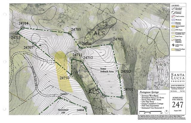 Discover the ultimate haven for your future home atop Black Mountain Trail within the prestigious Santa Lucia Preserve.This expansive 44.87-acre estate offers a unique opportunity for the discerning buyer to curate their lifestyle and architect the ideal residence on the substantial 3.32-acre building envelope. in addition to a one-plus story main home, enjoy the rare opportunity to incorporate full-time equestrian use, permitted on this homesite, along with the allowance for a guesthouse and caretaker's residence, Revel in breathtaking, multi-layered views stretching east and south, and enjoy the tranquility of end-of-road privacy, all while being just a short drive to the exclusive Preserve Ranch & Golf Club amenities.Don't miss your chance to own a piece of this exclusive community. Please note annual HOA fee is 2977.00 and currentAnnual community service fee is $25,550