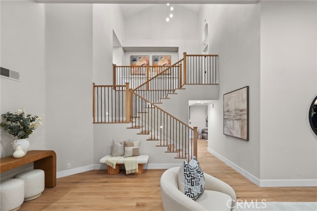 Nestled in the cherished Turtle Rock Pointe community, an oasis of friendly neighborhood charm, lies this exceptional end unit property – the largest model in the enclave. This completely transformed residence spans an impressive 2,357 square feet, where every single inch has been thoughtfully renovated with well over $300,000 in upgrades featuring the finest finishes including new windows and doors, wood flooring throughout, custom fireplace, custom staircase, and LED lights throughout. Ideally positioned on a quiet cul-de-sac, this private end unit offers an expansive backyard oasis featuring a built-in BBQ and bar, spacious dining areas perfect for entertaining, and a generous grassy area ideal for children and pets. Step inside and be greeted by an abundance of natural light that floods the open floor plan, creating a welcoming atmosphere enhanced by thoughtfully designed living spaces including a kitchen nook, formal dining area, formal living room, and family room. The newly designed kitchen showcases a functional island with premium stainless steel appliances, while the spa-like master retreat features a custom bathroom complete with a luxurious soaking tub, walk-in shower, dual vanity sinks, LED mirror, and a huge custom walk-in closet. The spacious three-car garage provides ample storage and convenience for this meticulously updated home. Turtle Rock Pointe is an exclusive community comprising only 188 homes, fostering a tight-knit and friendly environment where neighbors greet one another and stroll the tree-lined streets. Residents also enjoy access to association amenities that include two separate pools and jacuzzis. Additionally, its prime location offers proximity to esteemed educational institutions such as Concordia, UCI, Uni High, Vista Verde, and Bonita Canyon Elementary, while being conveniently located near Strawberry Farms Golf Course, shopping, restaurants, and easy freeway access.