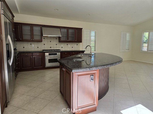 Within the gates of the beautiful community of Canyon's Edge, this detached single-story customized residence features three bedrooms/2.5 baths, a gorgeous customized kitchen with stainless steel appliances & granite counters, a pantry, a formal dining room/office, and a huge family/living room, which is great for entertaining: plantation shutters and a gorgeous master suite. Features include tile countertops and a finished walk-in closet. Second bedroom with adjacent full bath and laundry room. Two-car garage with plenty of storage. Tesla charging connection installed, French doors, custom landscaping, premium lot with extra-large private backyard.