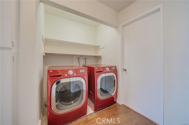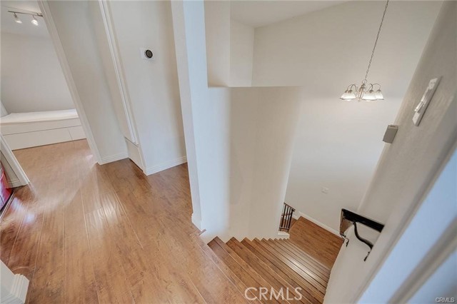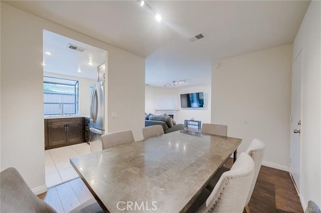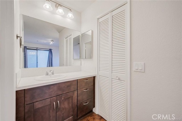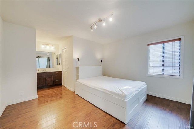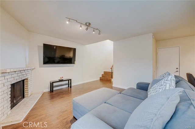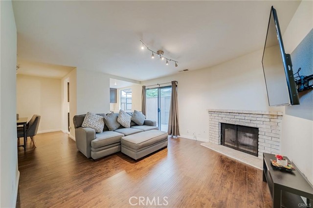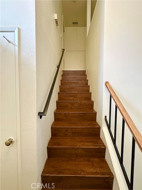 Well-kept two-story condo in a gated community. The entry opens to a bright living room with high ceilings and a fireplace. Upstairs are two en-suite bedrooms, each with a walk-in closet and private balcony. The main floor includes a guest powder room and access to a small backyard patio. The unit features in-unit laundry and a direct-access two-car garage. Community amenities include two pools, with HOA covering water and trash. Conveniently located near the 10 and 605 freeways, Sierra Center shopping mall, and the Metrolink station.